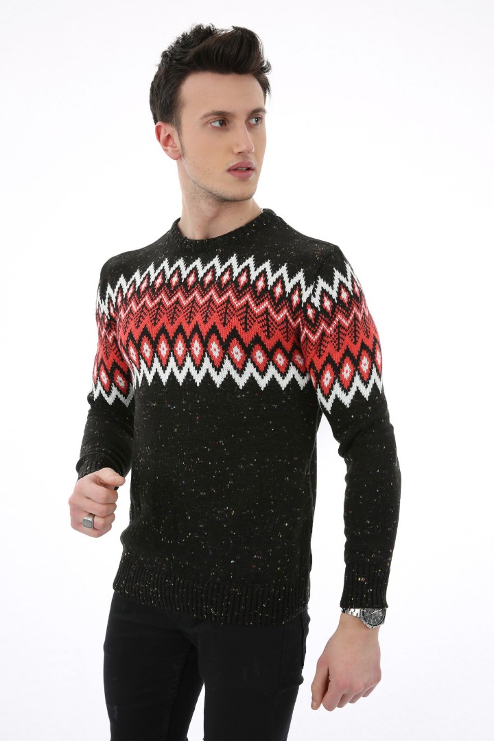 Baklava Desenli Kalın Kışlık Erkek Günlük Triko Kazak