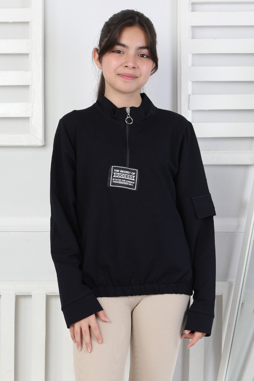 Baskılı Yarım Fermuarlı Lacivert Kız Çocuk Sweatshirt