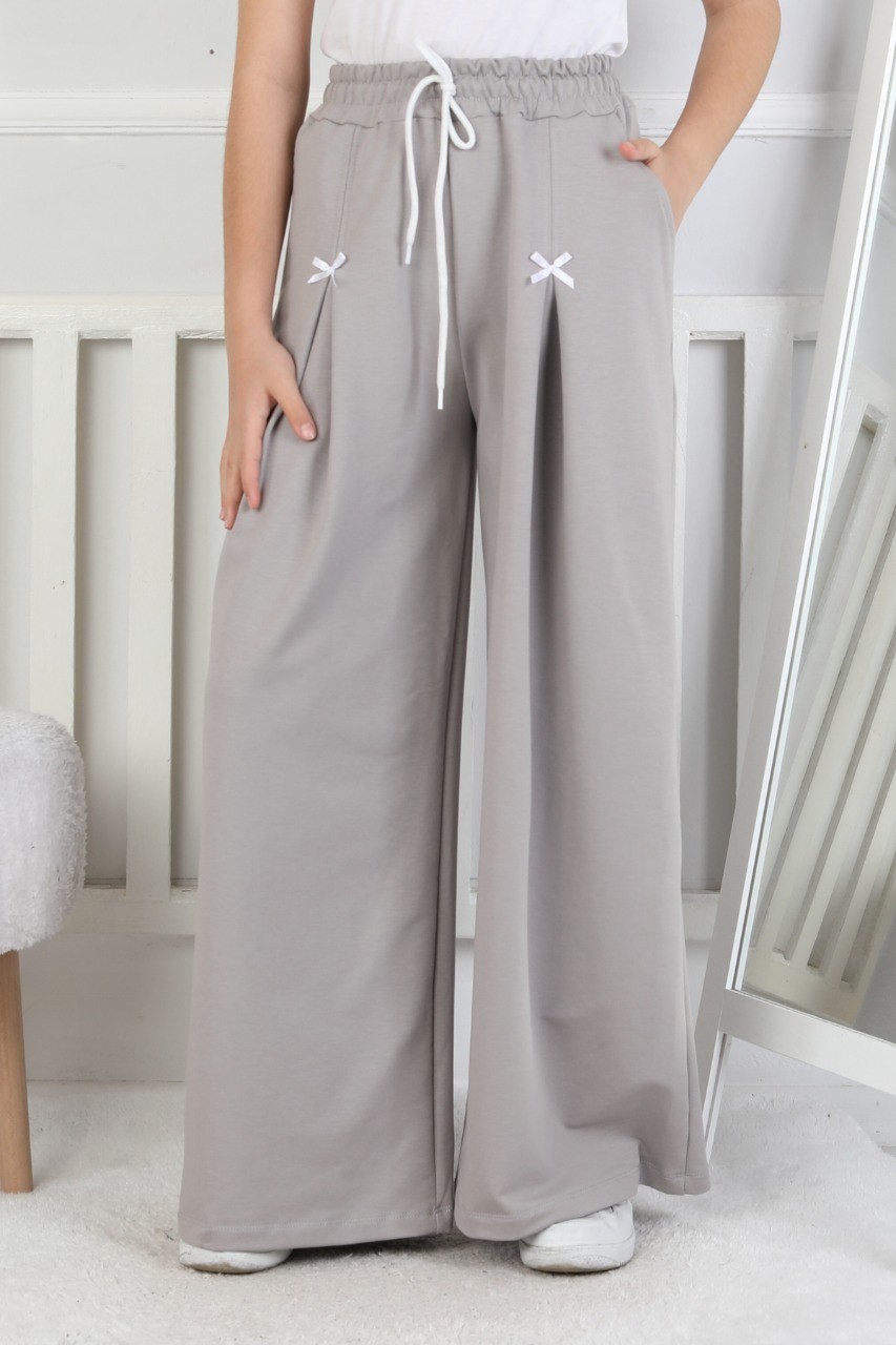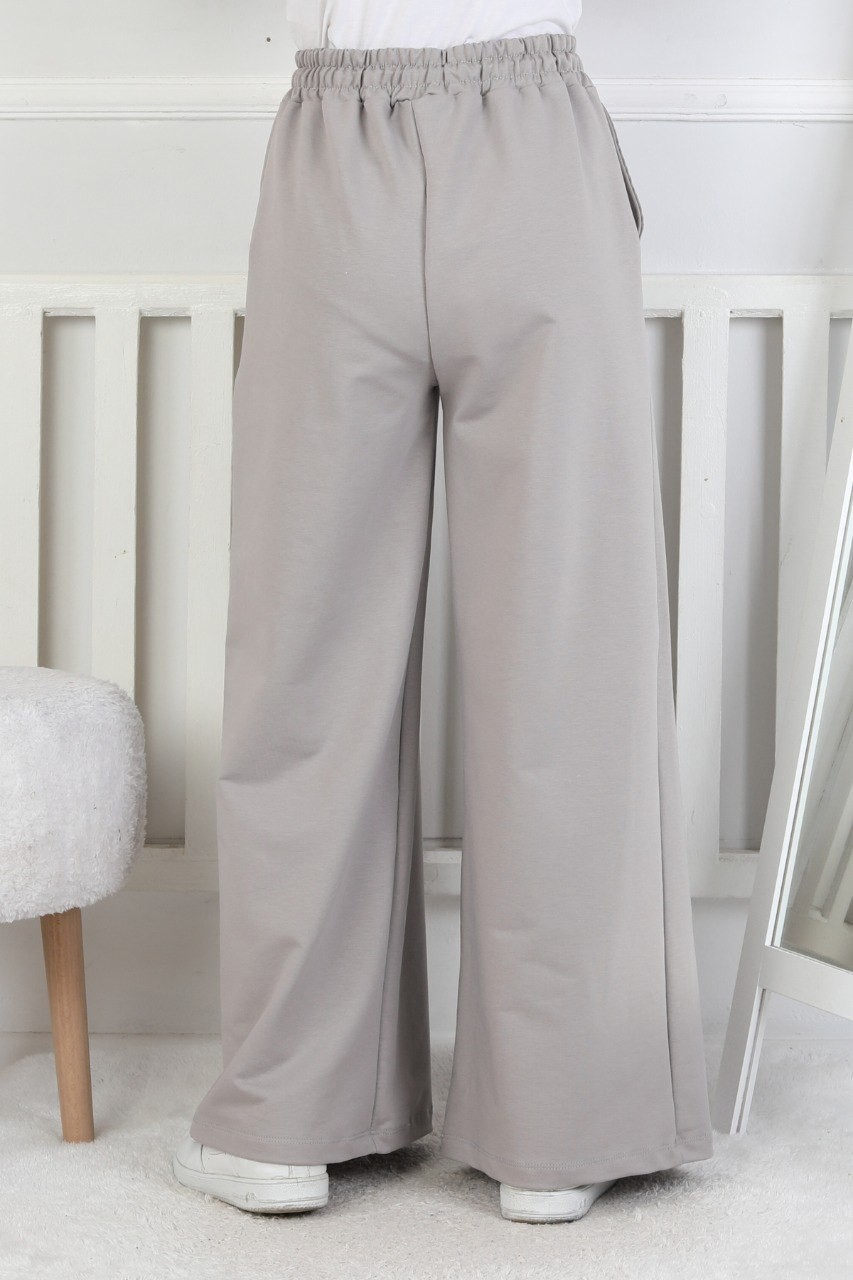 Bol Paça Cepli Baskılı Kız Çocuk Gri Eşofman Altı
