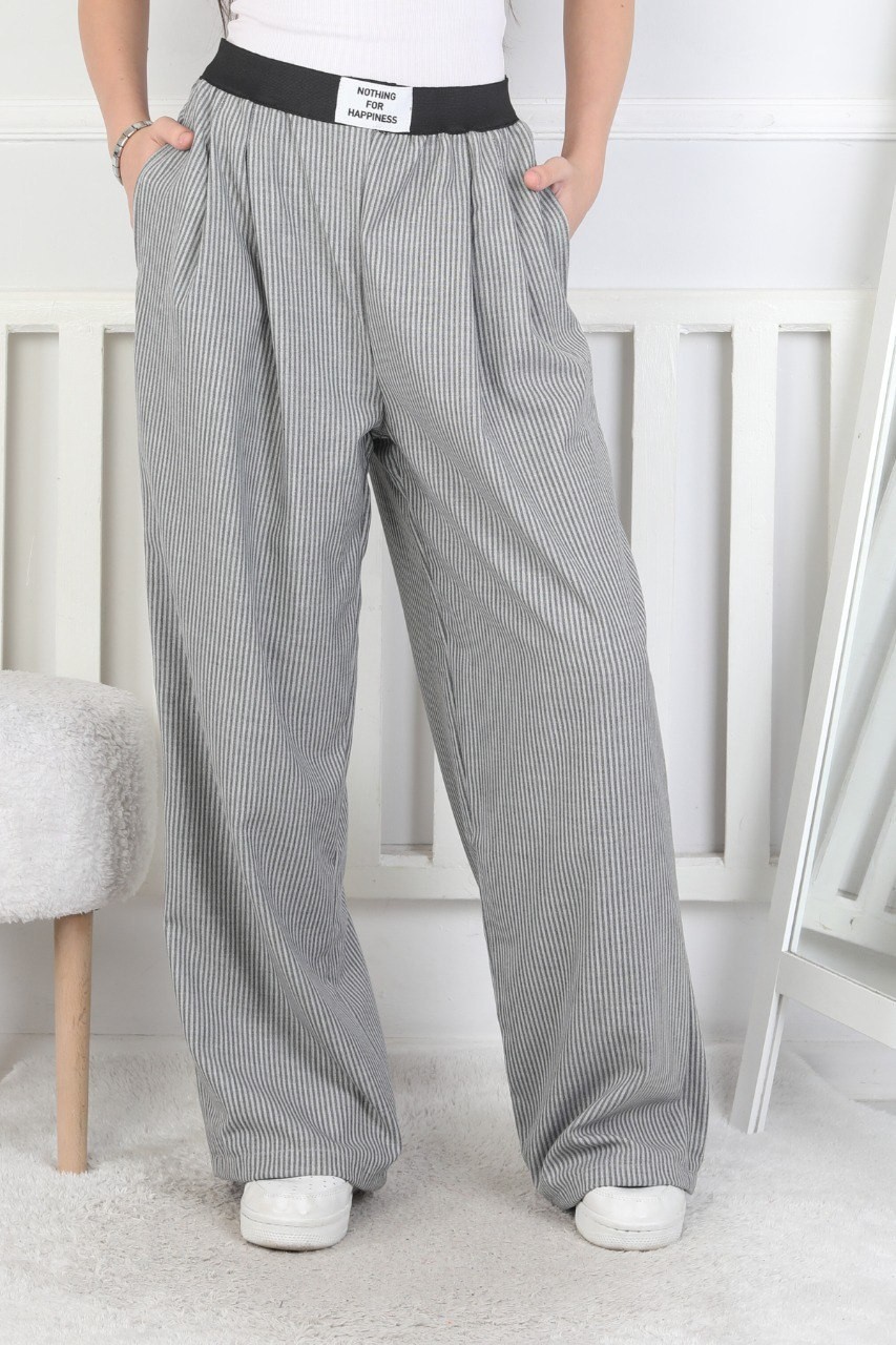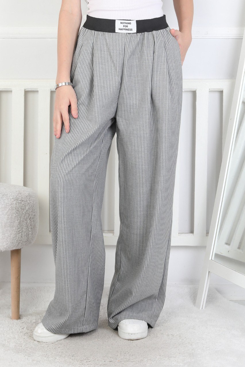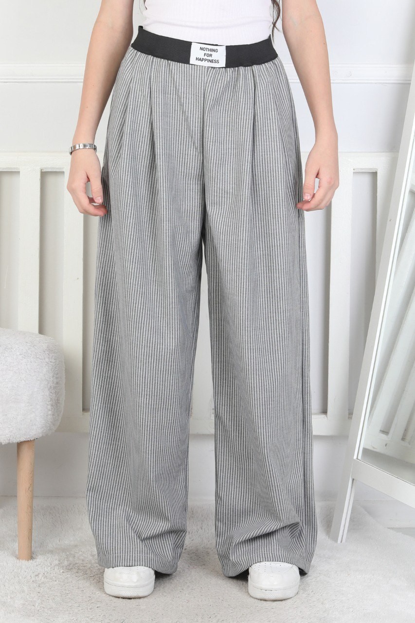 Bol Paça Dik Çizgili Kız Çocuk Gri Eşofman Altı
