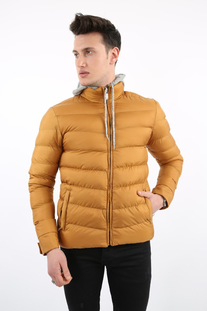 · Çıkmalı kapşonlu yan cepli erkek günlük şişme mont soğuk havalar için idealdir;