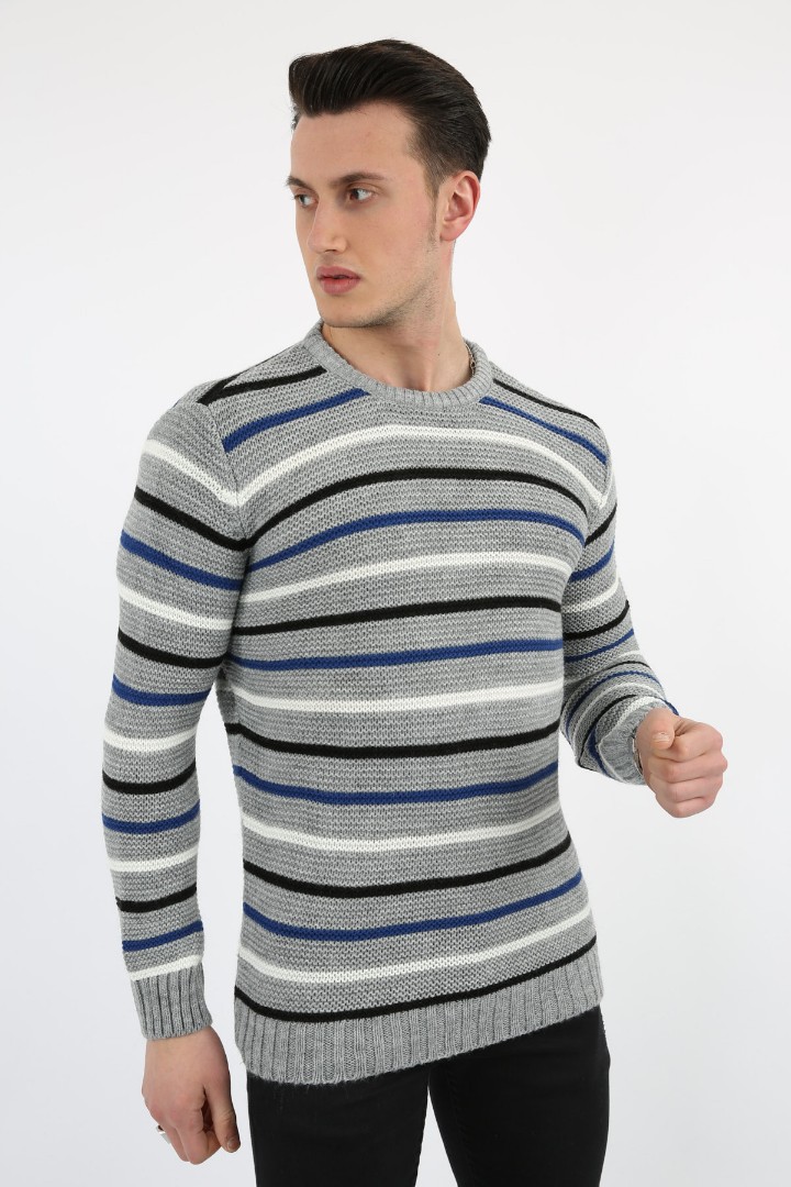 Çizgi Desenli Kalın Kışlık Erkek Günlük Triko Kazak