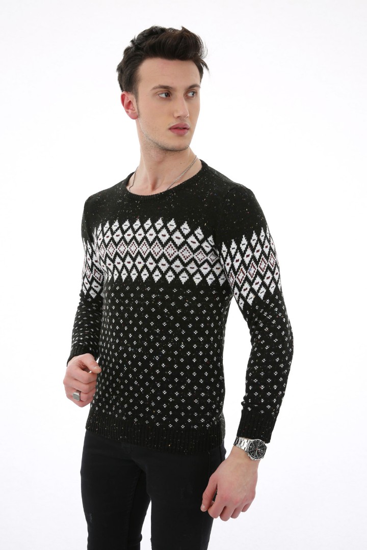 Desenli Sıfır Yaka Kışlık Erkek Günlük Triko Kazak