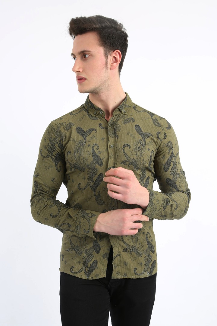 Erkek Günlük Full Likralı Desenli Gömlek