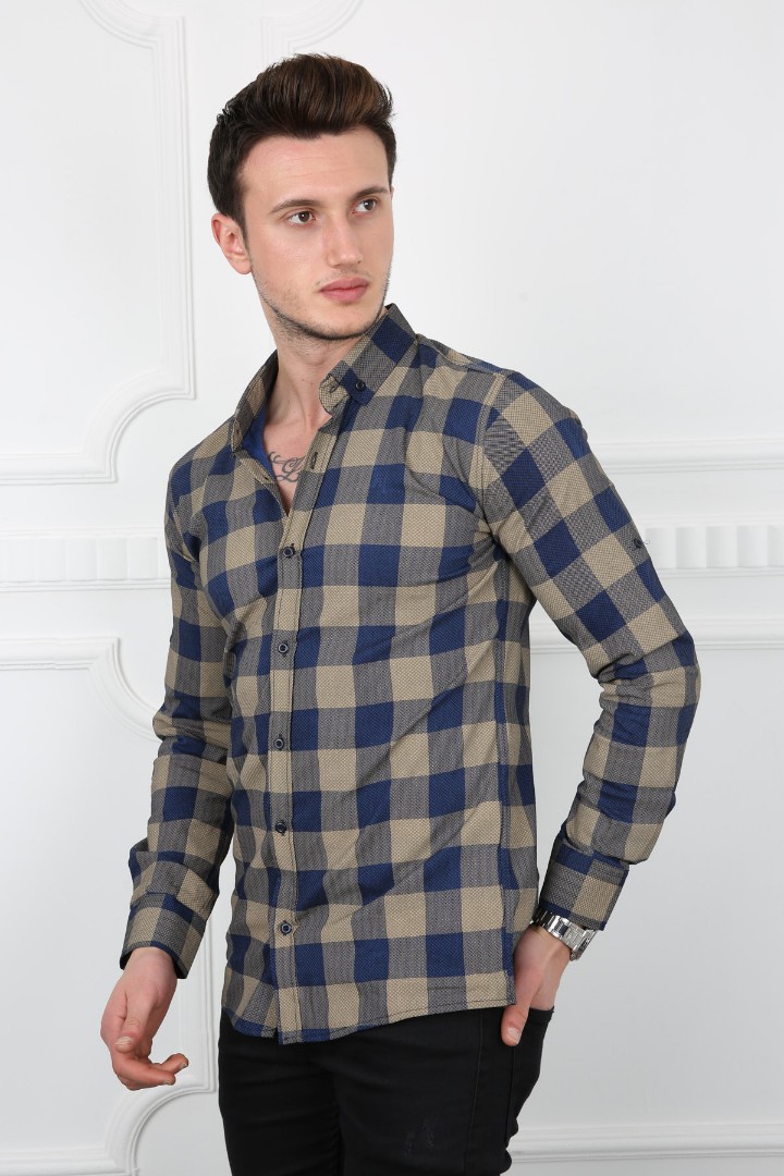 Erkek Günlük Likralı Büyük Kareli Gömlek