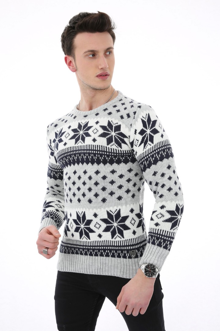 Erkek Kar Desenli Kalın Günlük Triko Kazak