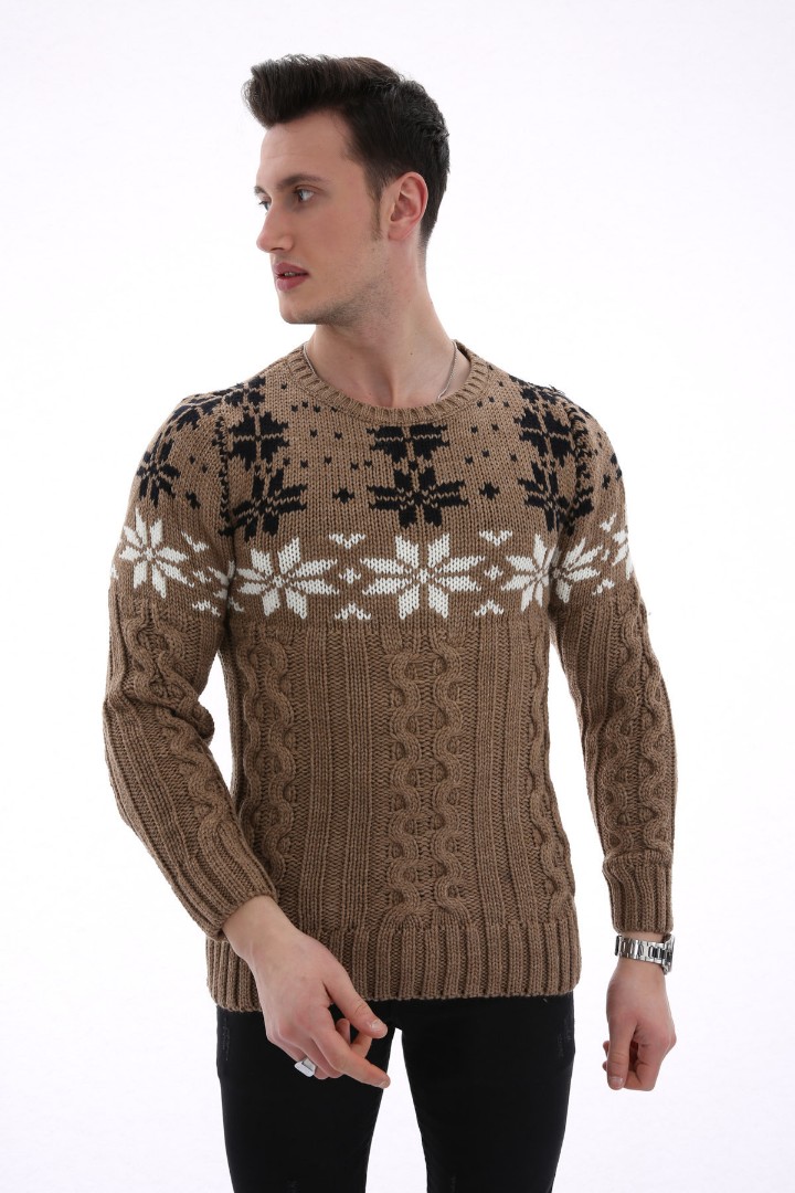 • Erkek kar desenli kabartma baskılı kışlık kalın günlük triko kazak soğuk havalarda sıcak ve konforlu kullanım sunar;