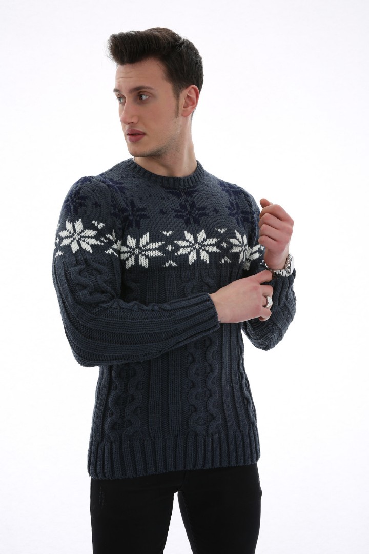 • Kabartma baskı ve kar desenleri kazağa şık ve dikkat çekici bir görünüm kazandırır;