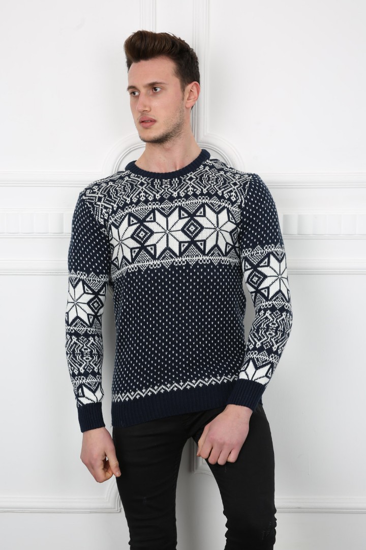 Erkek Kar Desenli Kışlık Günlük Triko Kazak