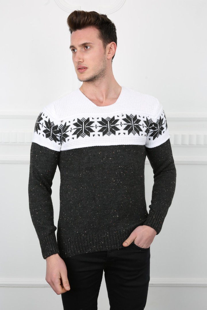 Erkek Kar Desenli Kışlık Kalın Günlük Triko Kazak