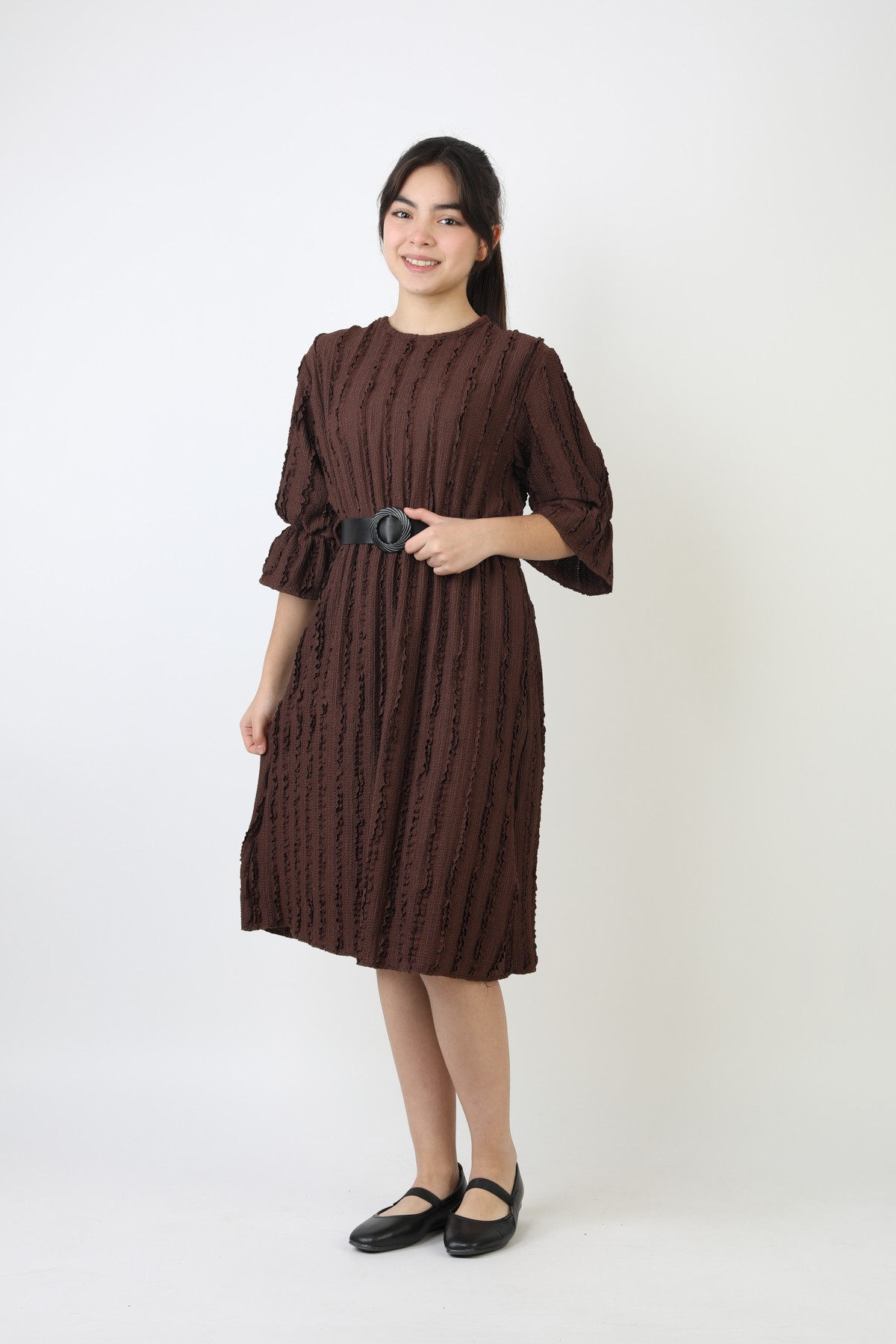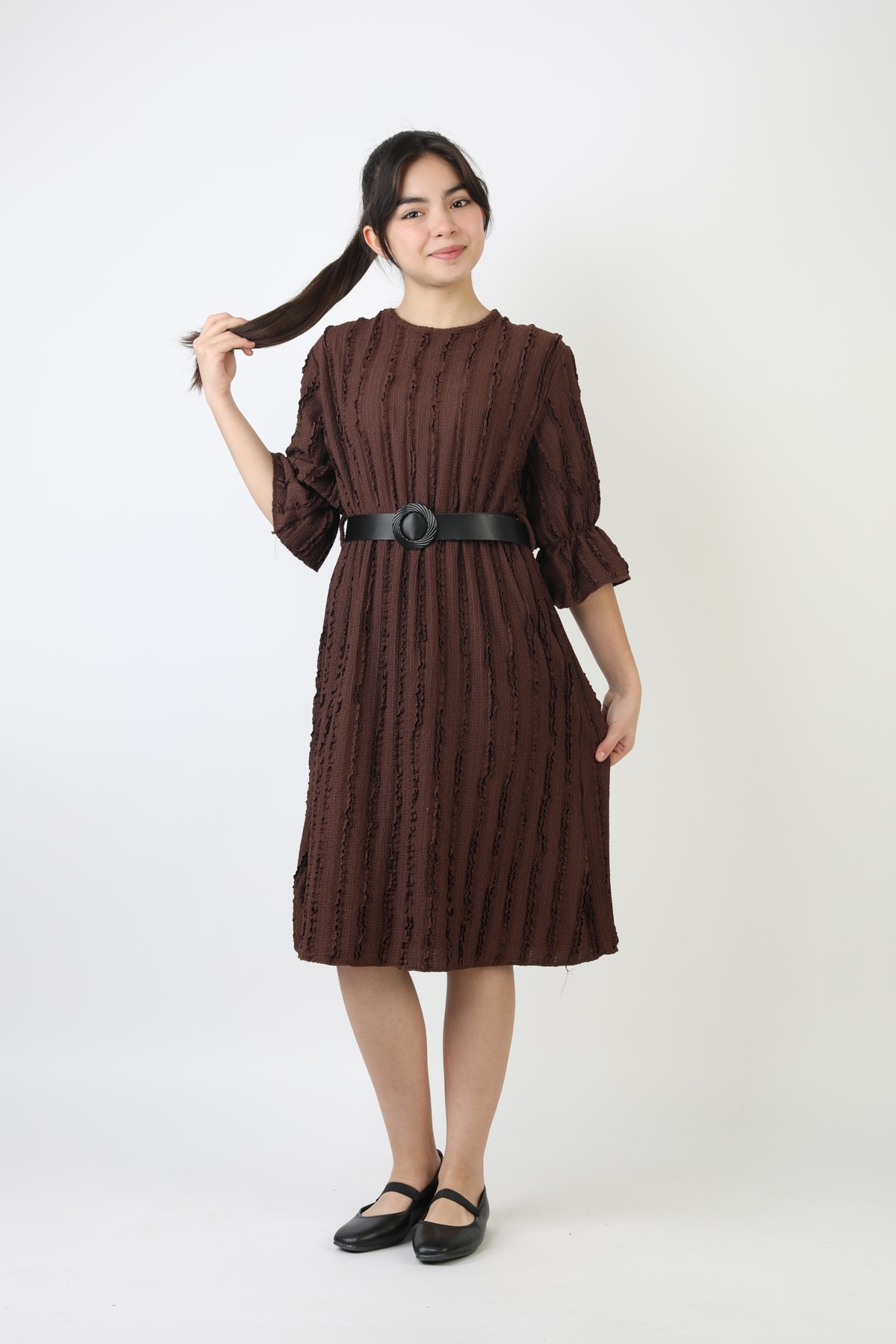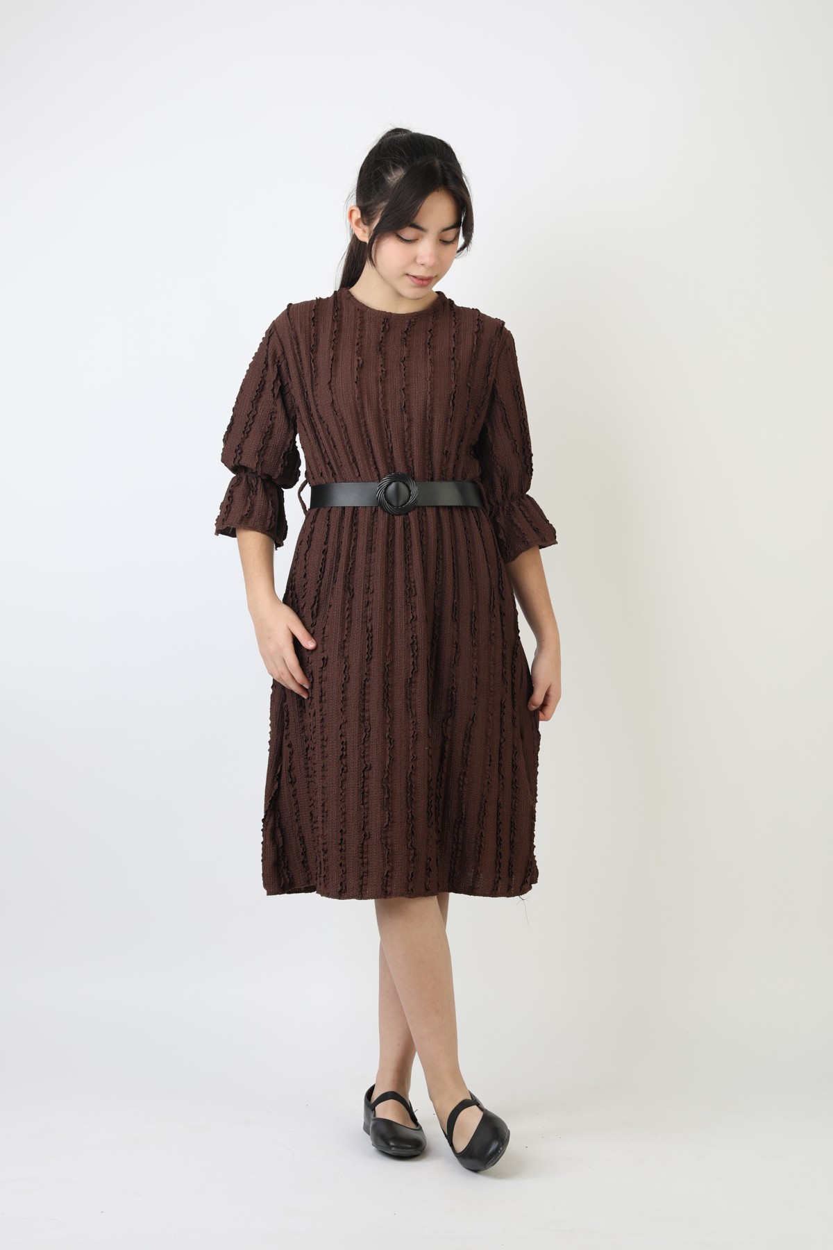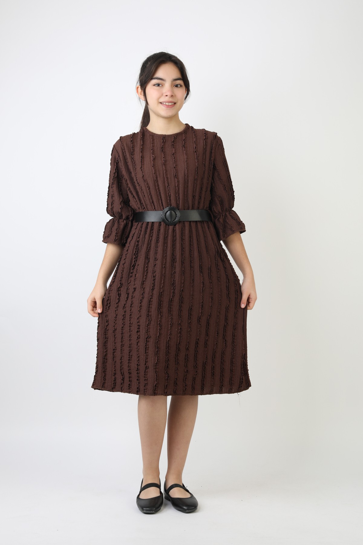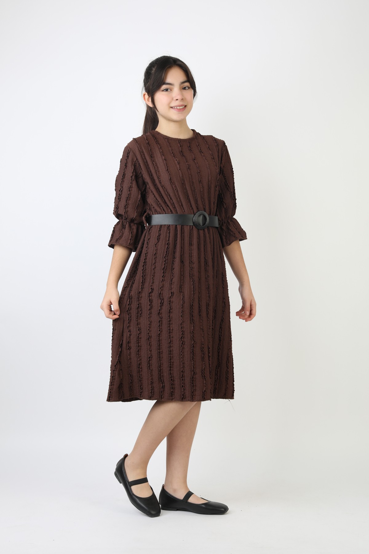 Fırfırlı Bürümcük Kumaş Kız Çocuk Kemerli Günlük Şık ve Rahat Elbise