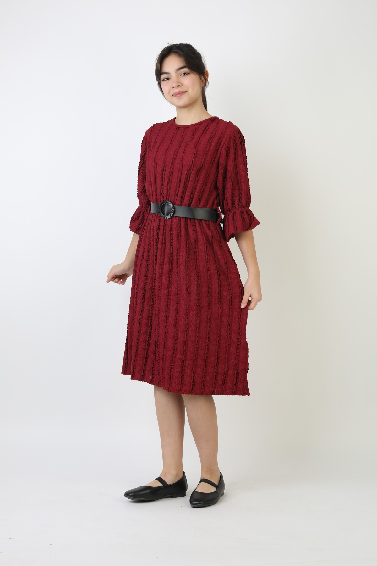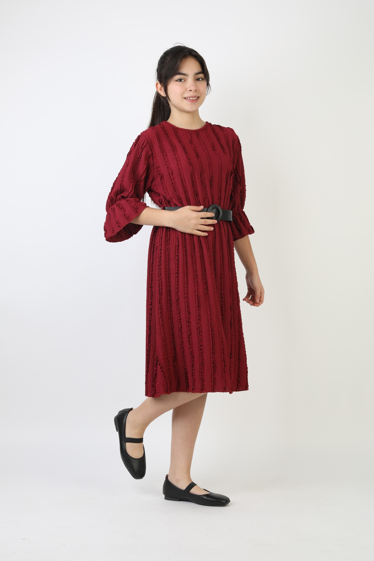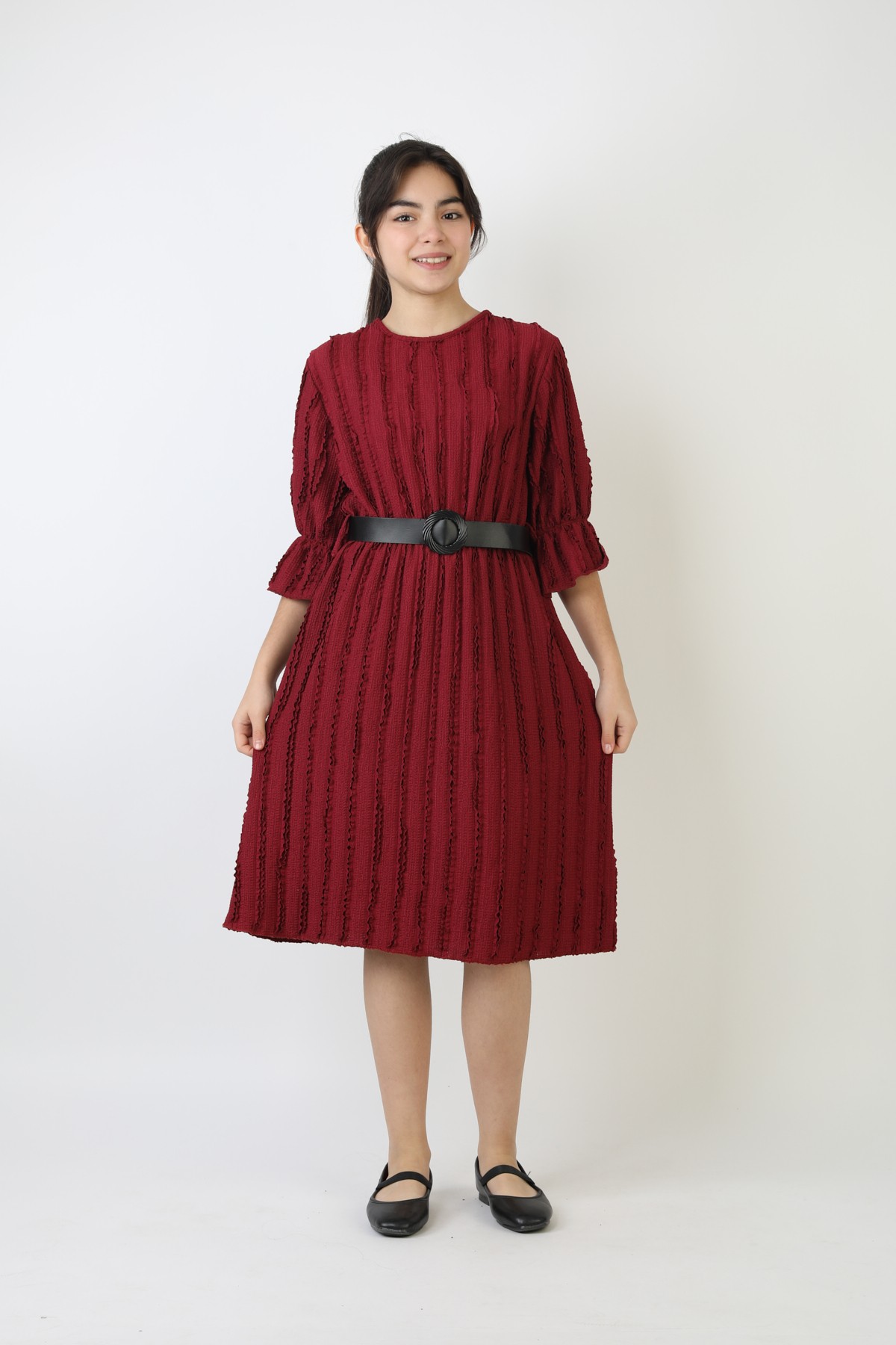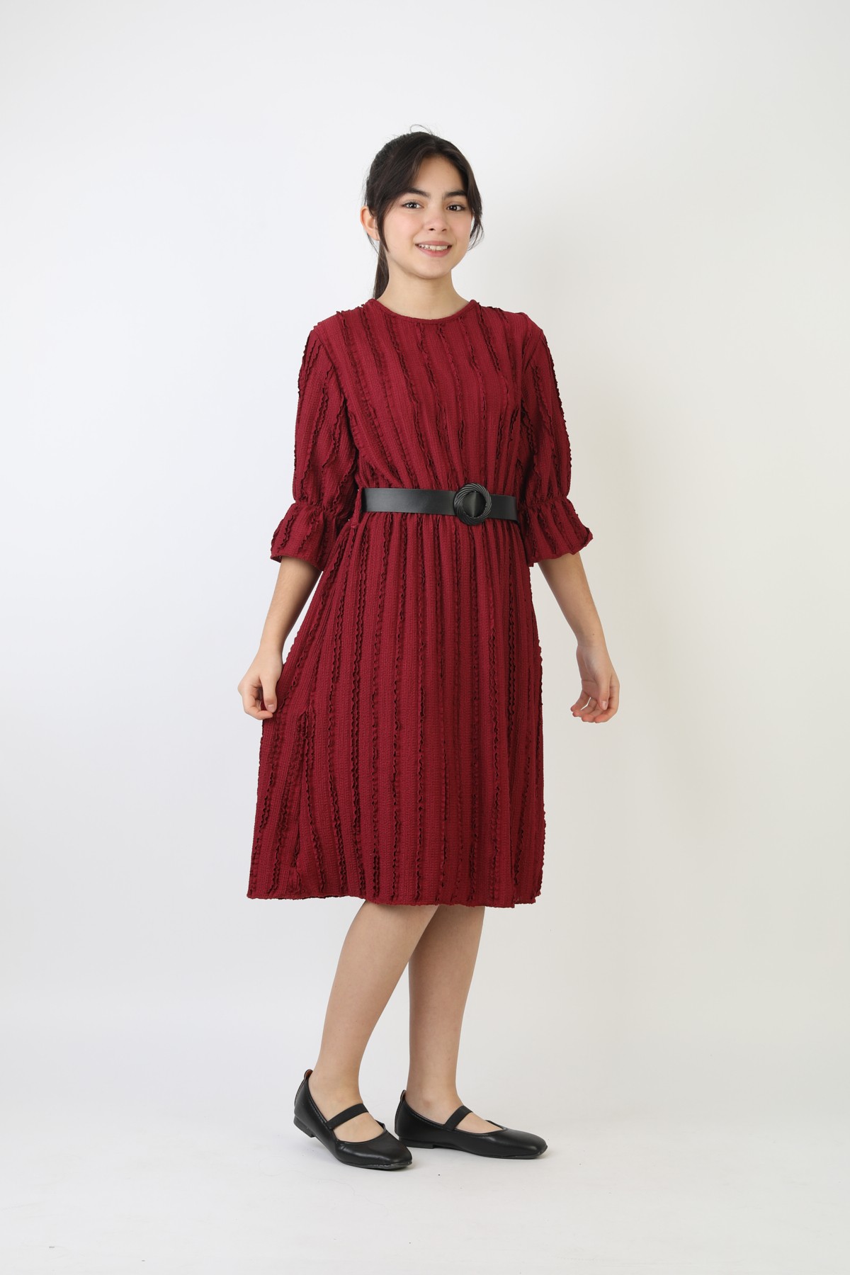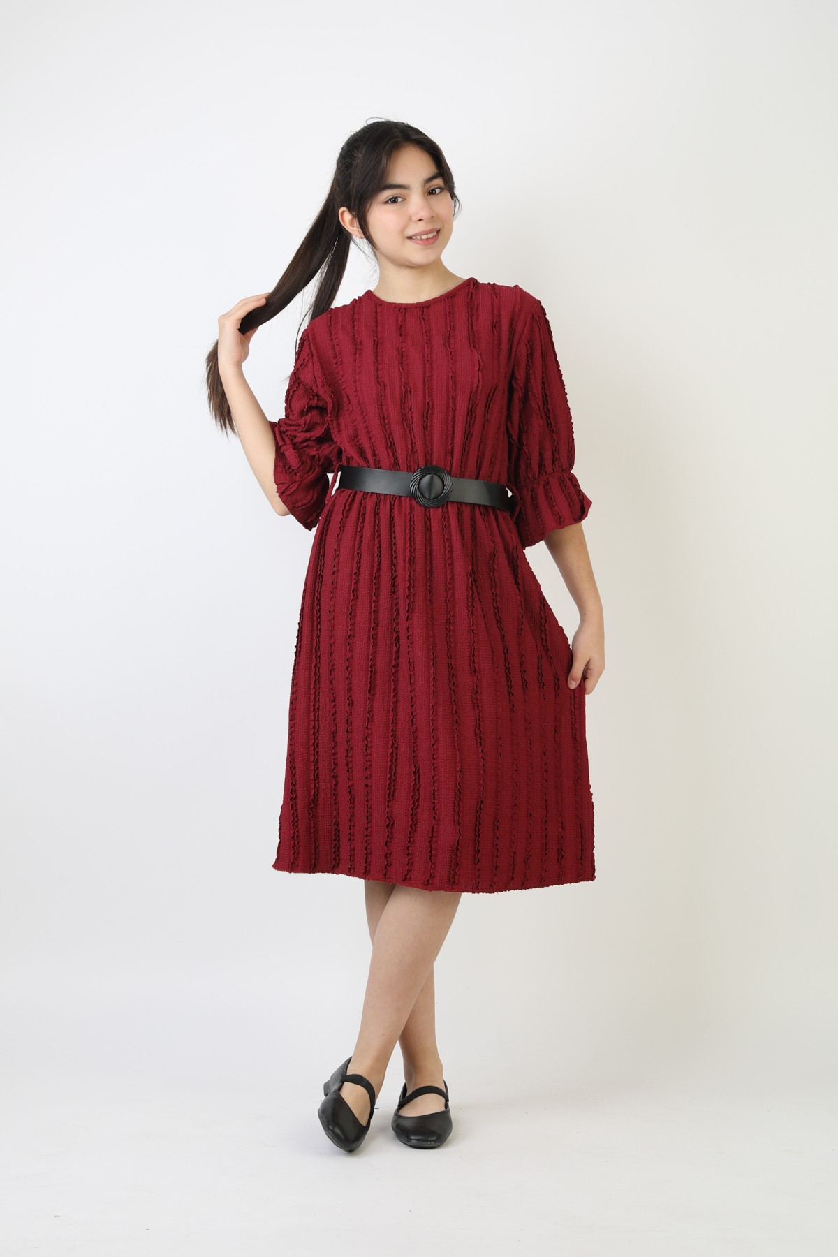 Fırfırlı Bürümcük Kumaş Kız Çocuk Kemerli Günlük Şık ve Rahat Elbise