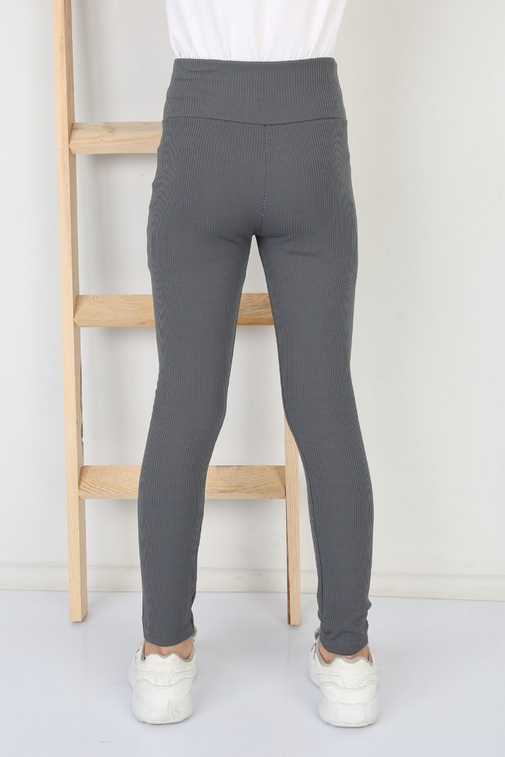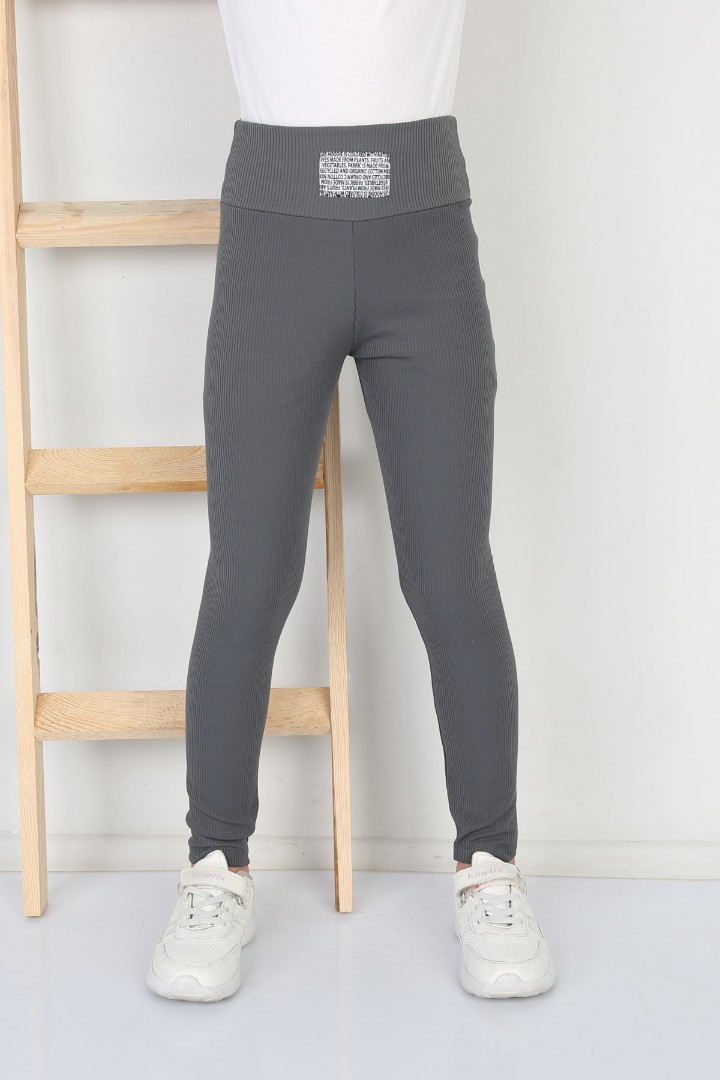 · Fitilli şardonlu antrasit kız çocuk tayt, günlük kullanım için idealdir;