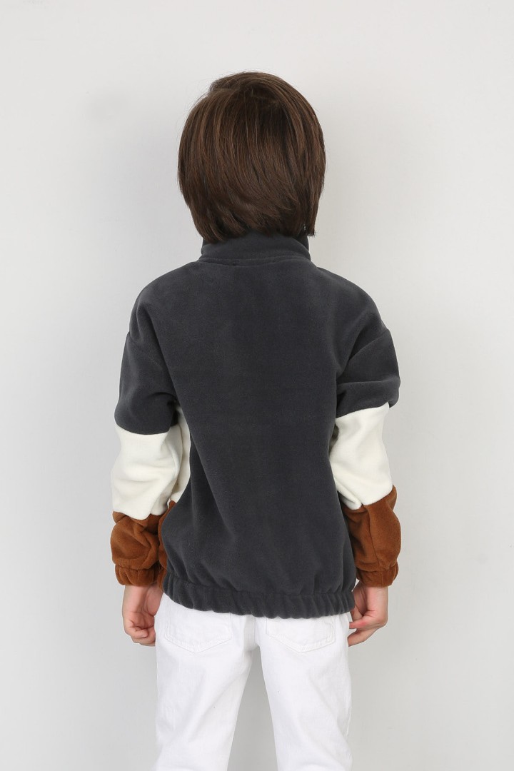 Full Polar Kumaş Yarım Fermuarlı Garnili Erkek Çocuk Günlük Sweatshirt
