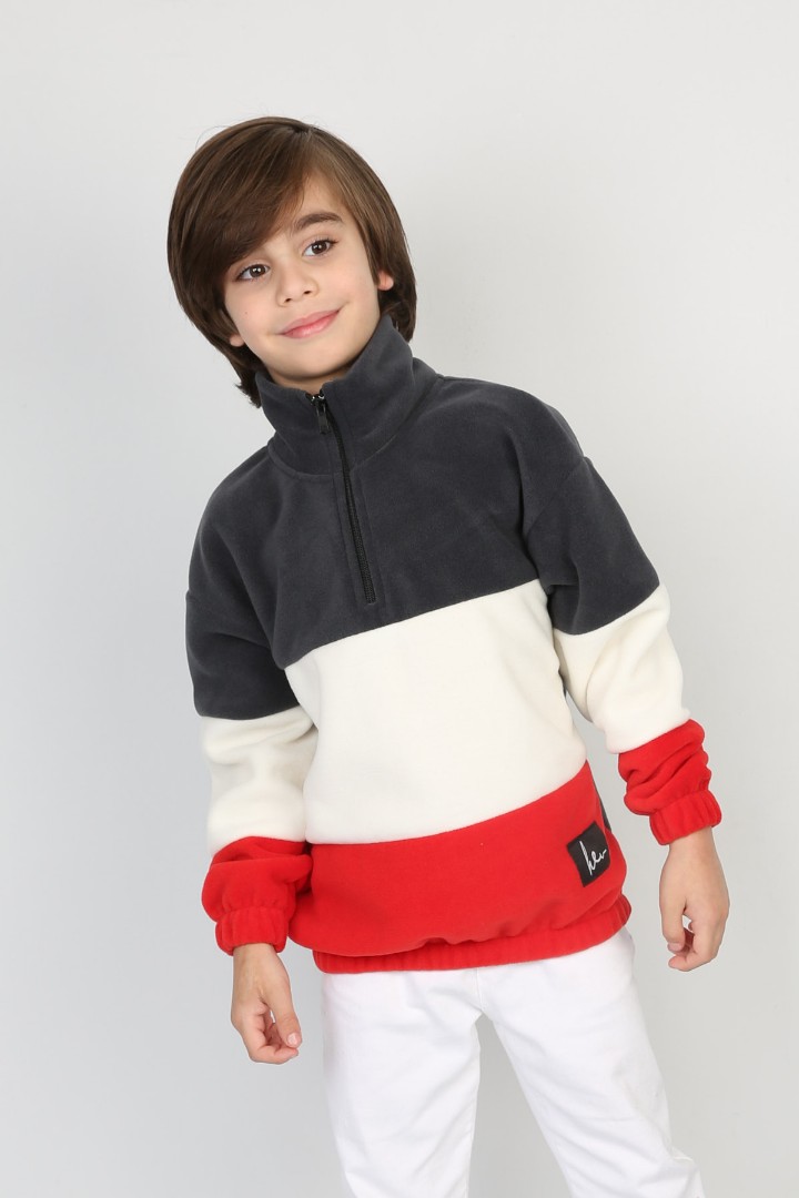 Full Polar Kumaş Yarım Fermuarlı Garnili Erkek Çocuk Günlük Sweatshirt