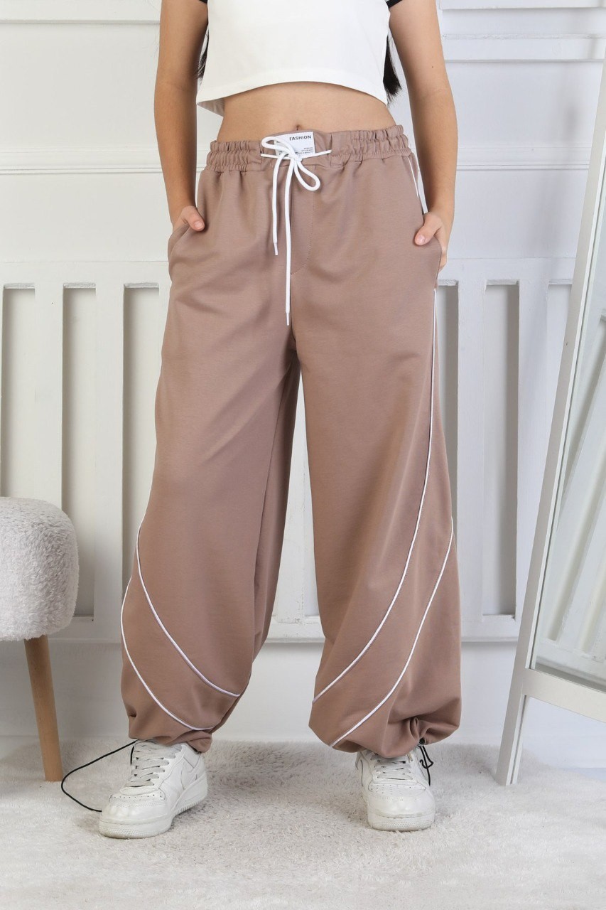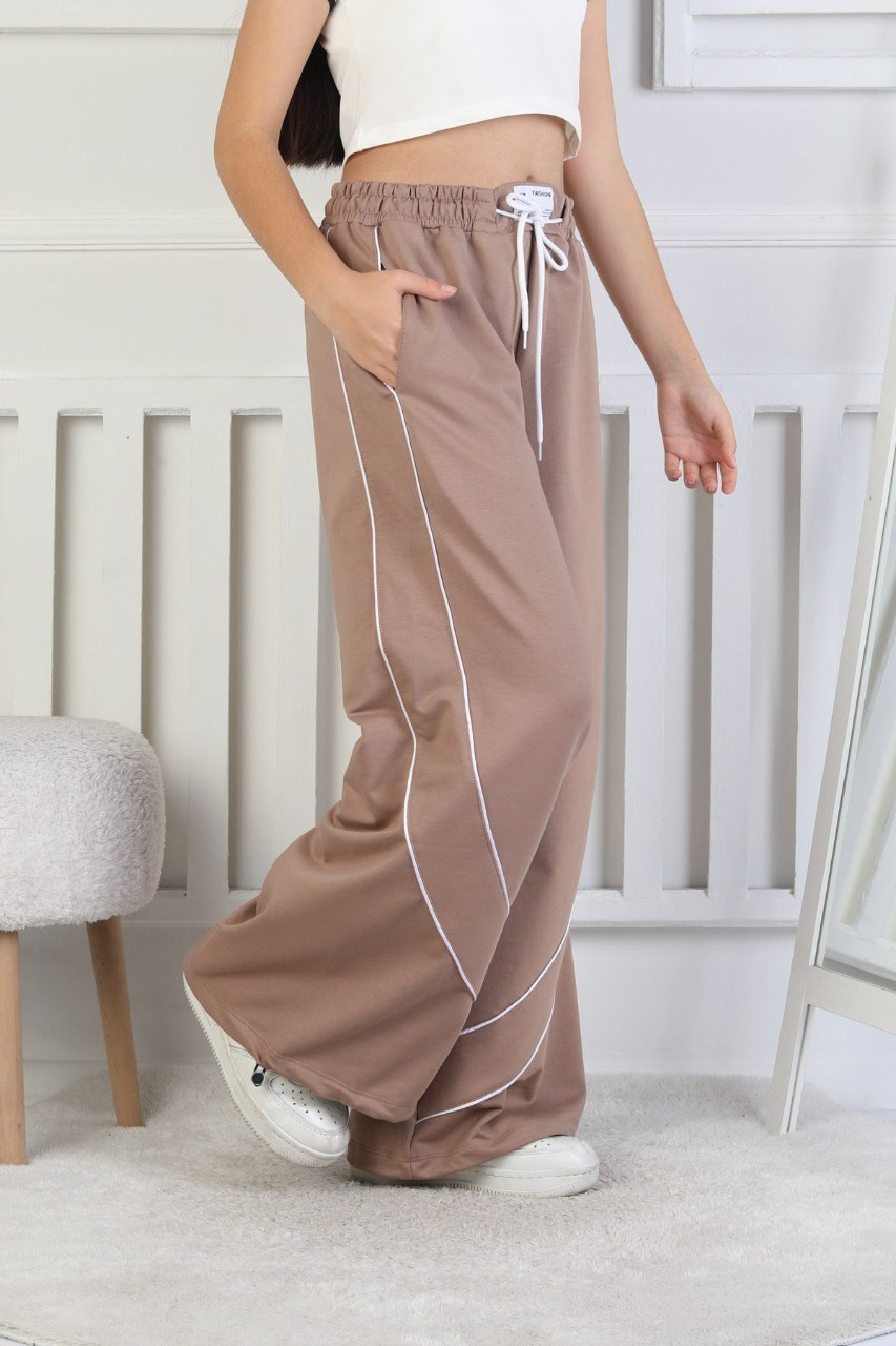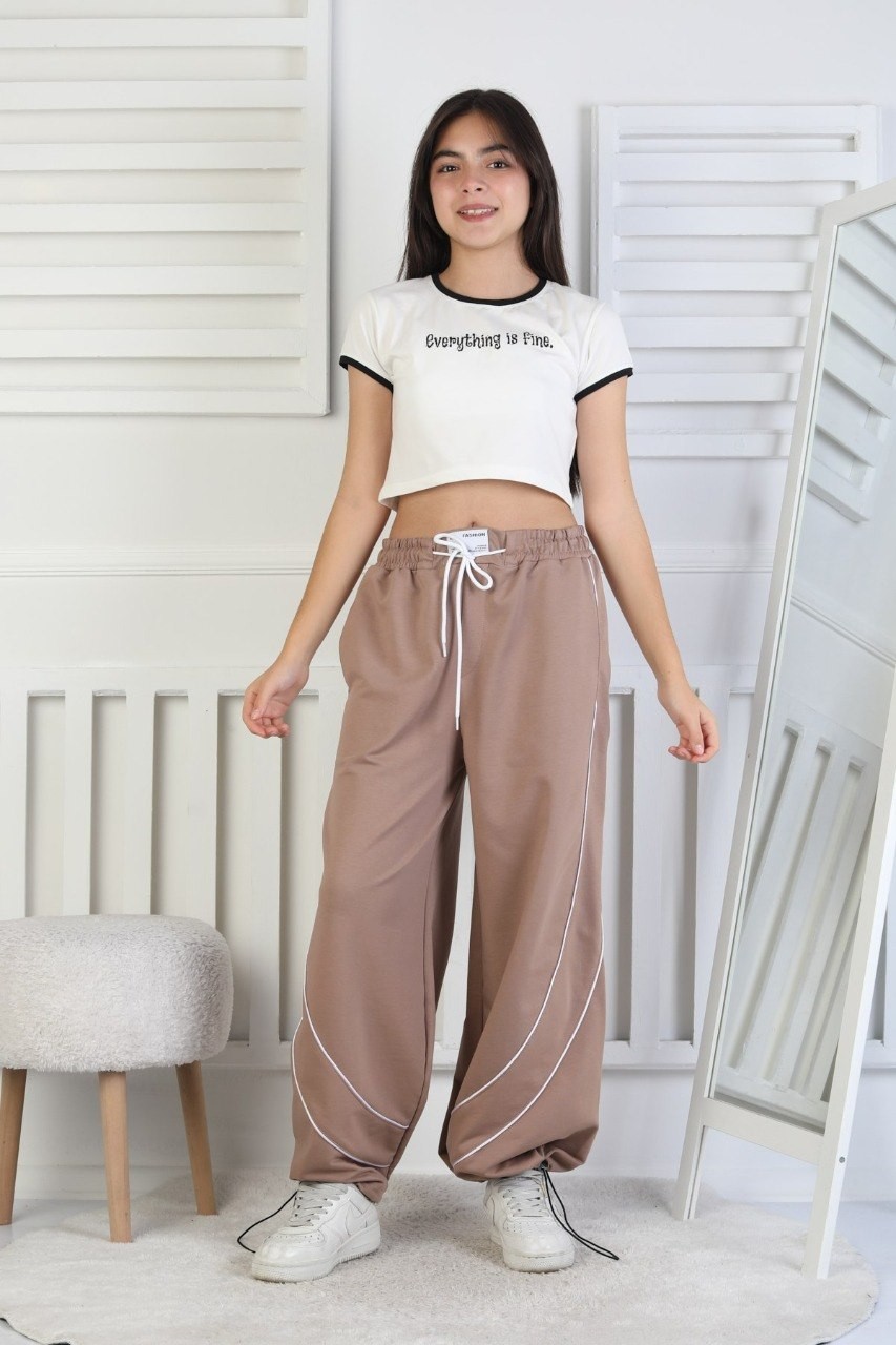 İki İplik Baskılı Çapraz Çizgili Kız Çocuk Eşofman Altı