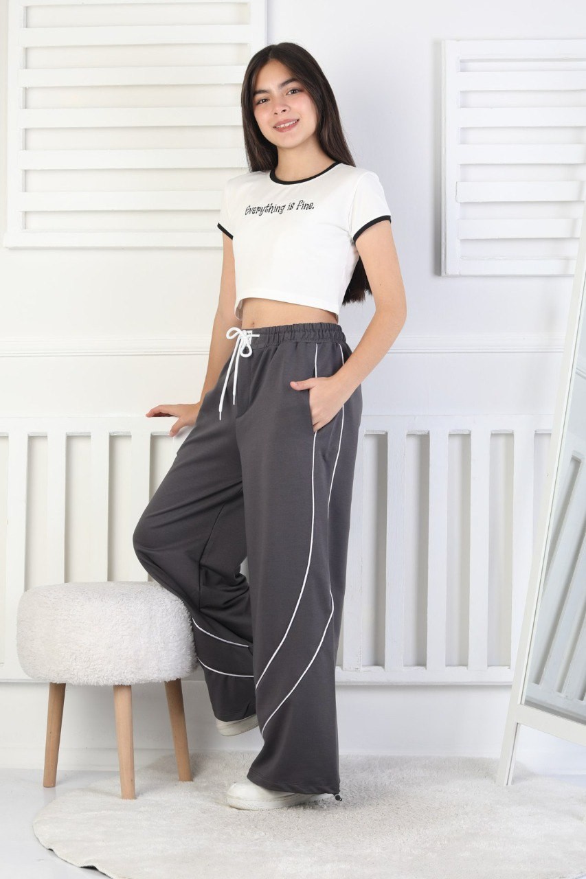 İki İplik Baskılı Çapraz Çizgili Kız Çocuk Eşofman Altı