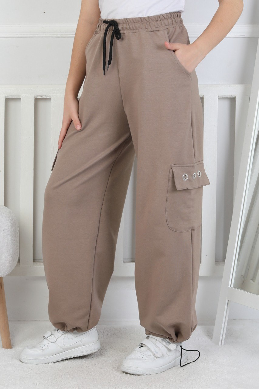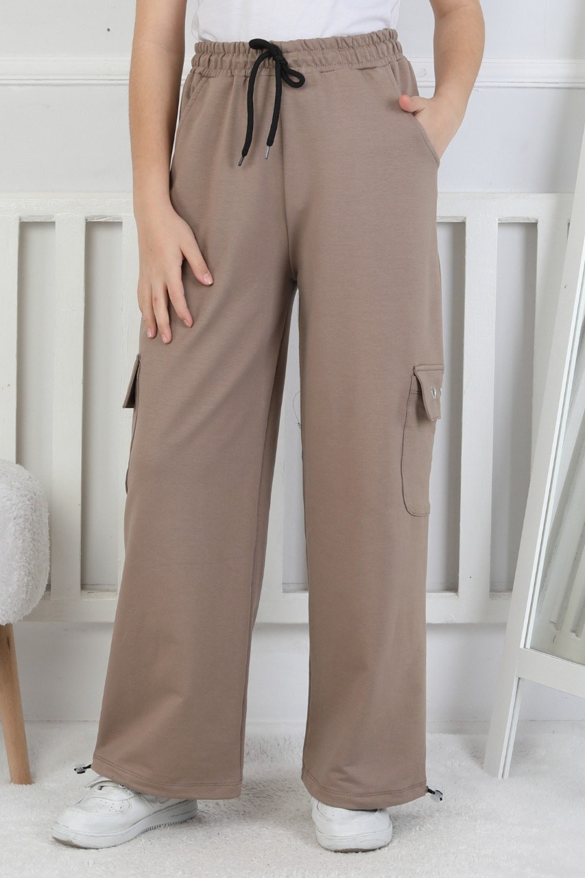 İki İplik Baskılı Kargo Cepli Kahverengi Kız Çocuk Eşofman Altı