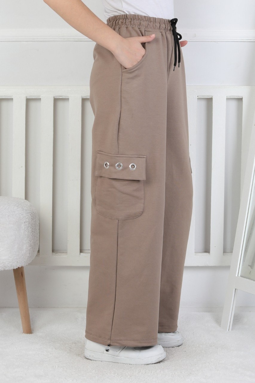 İki İplik Baskılı Kargo Çepli Kız Çocuk Eşofman Altı