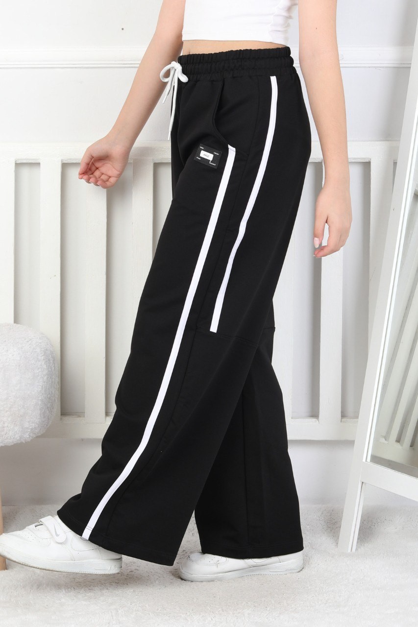 İki İplik Bol Paça Dik Çizgili Kız Çocuk Eşofman Altı