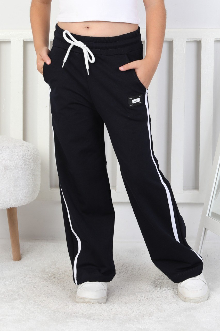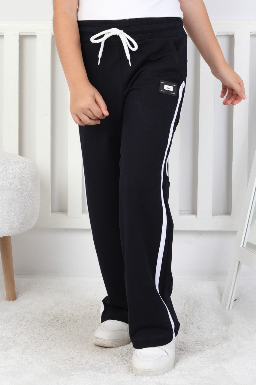 İki İplik Bol Paça Dik Çizgili Kız Çocuk Lacivert Eşofman Altı