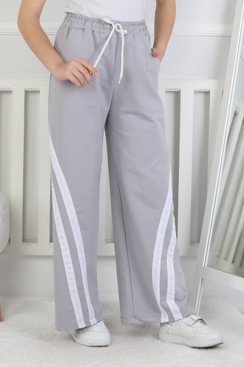 İki İplik Çapraz Çizgili Gri Kız Çocuk Eşofman Altı