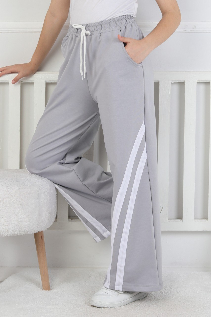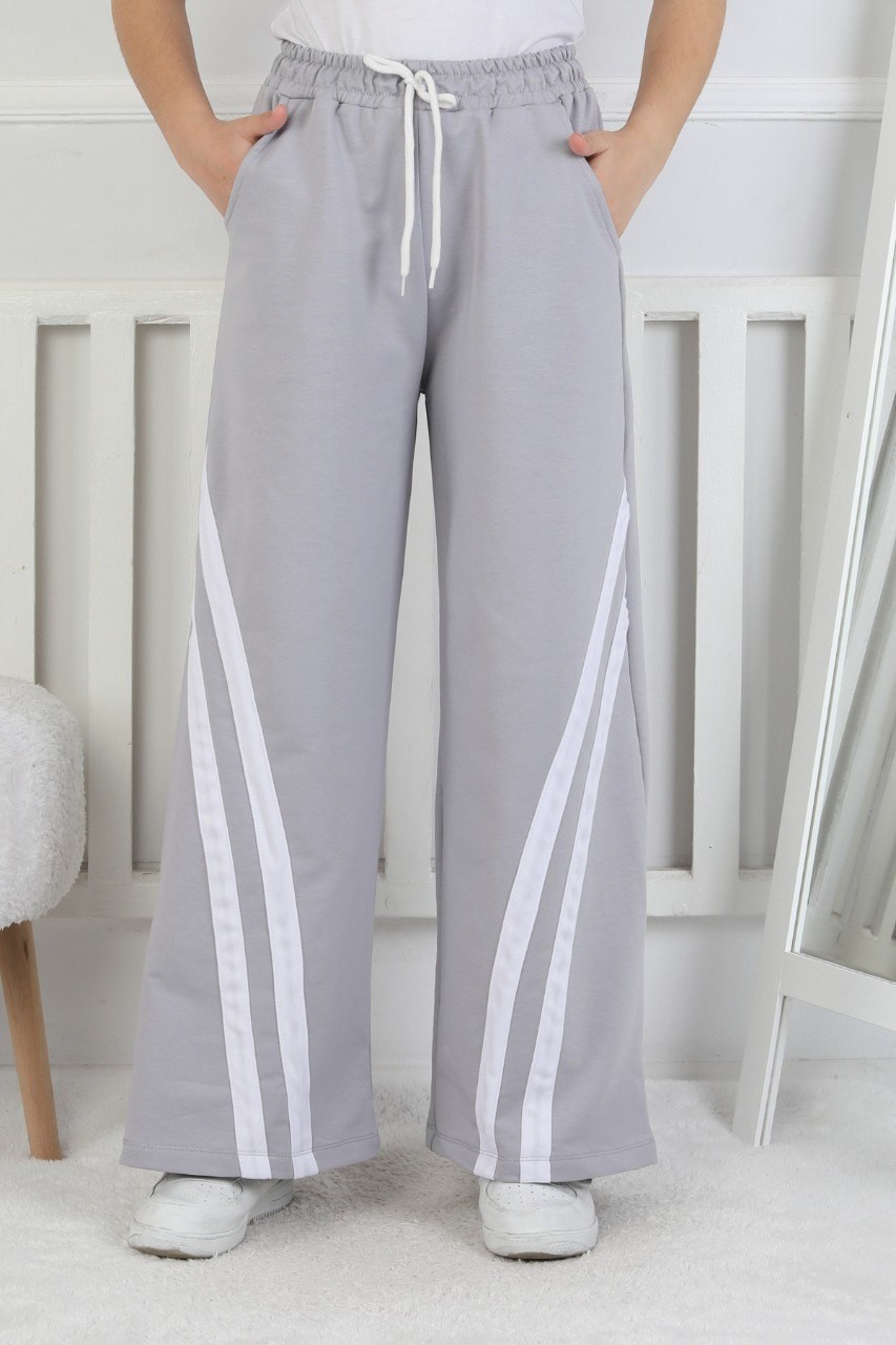İki İplik Çapraz Çizgili Kız Çocuk Eşofman Altı