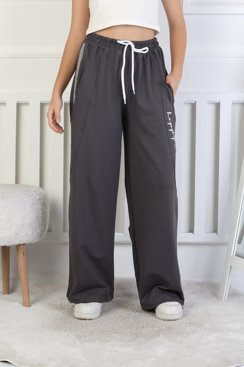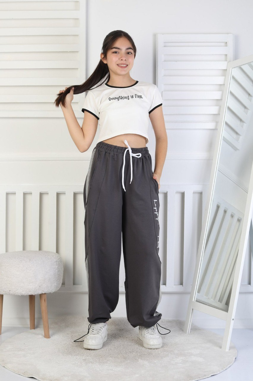 İki İplik Çizgili Baskılı Kız Çocuk Eşofman Altı