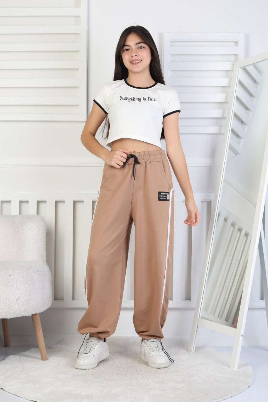 İki İplik Çizgili Kız Çocuk Eşofman Altı