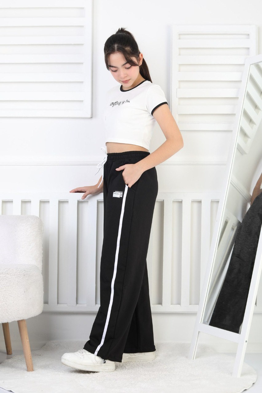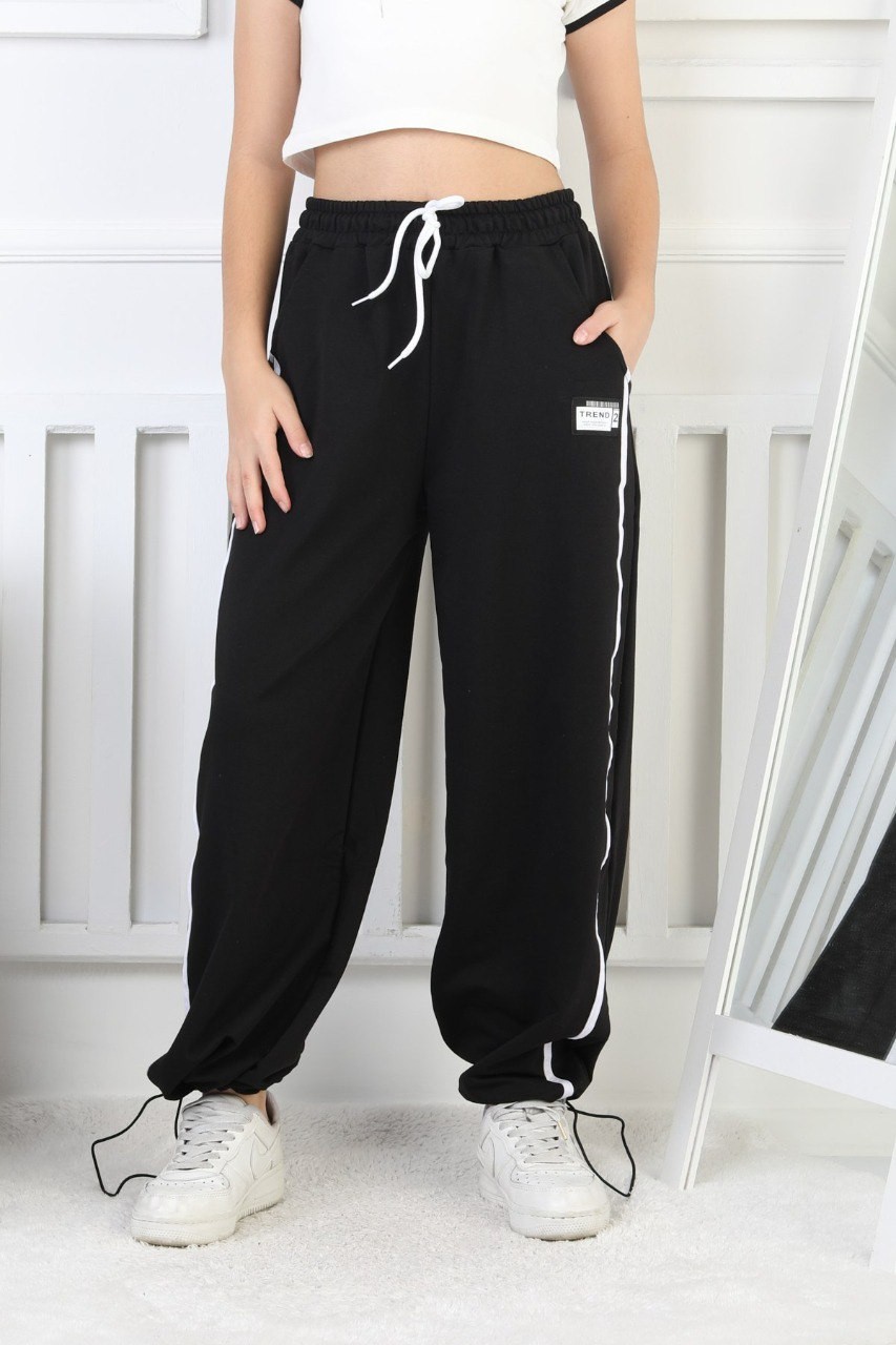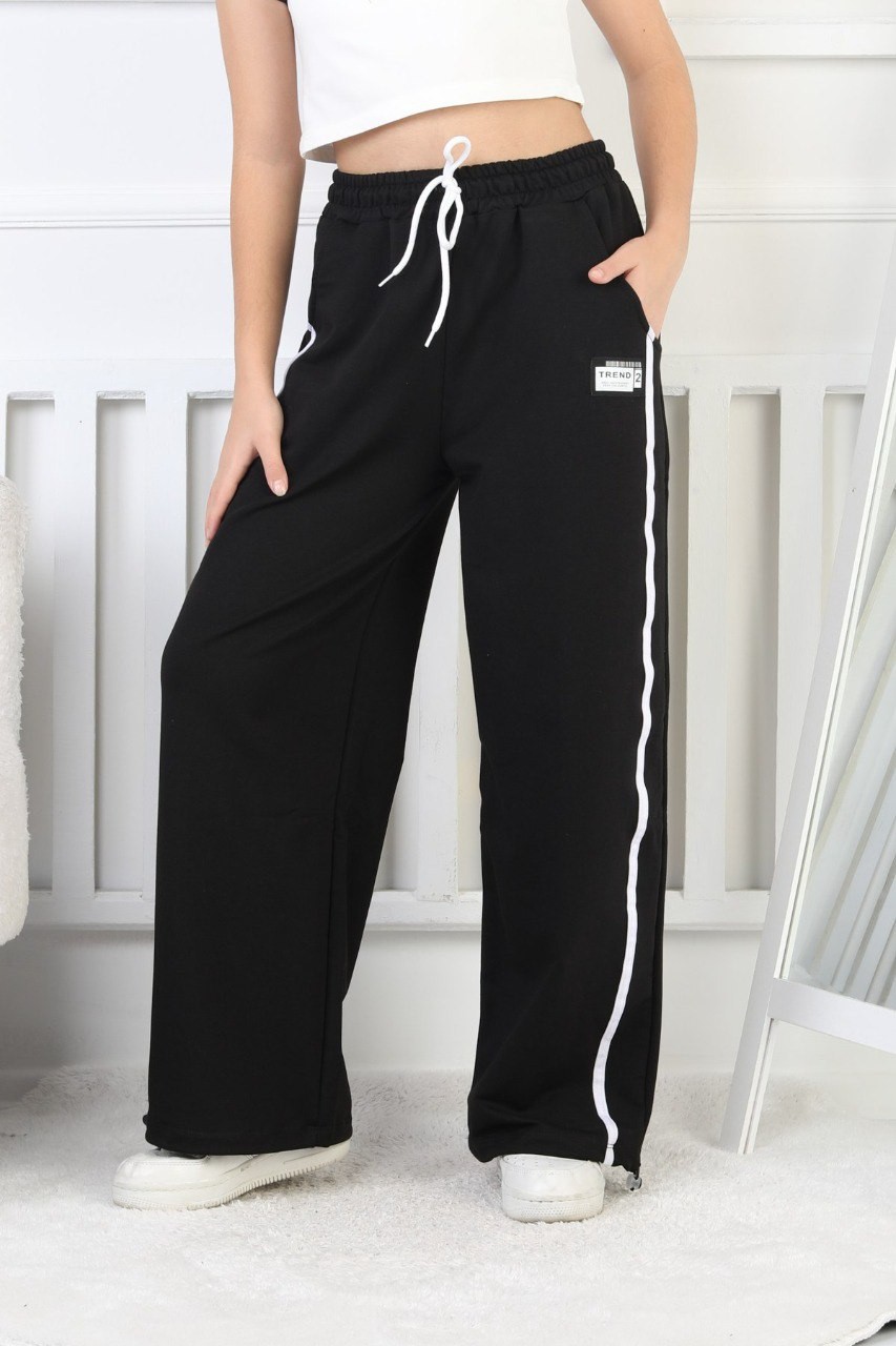 İki İplik Çizgili Siyah Kız Çocuk Eşofman Altı