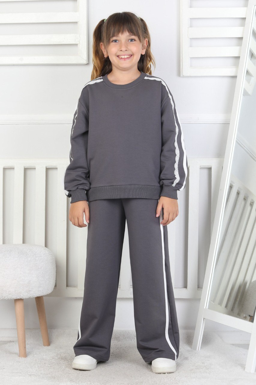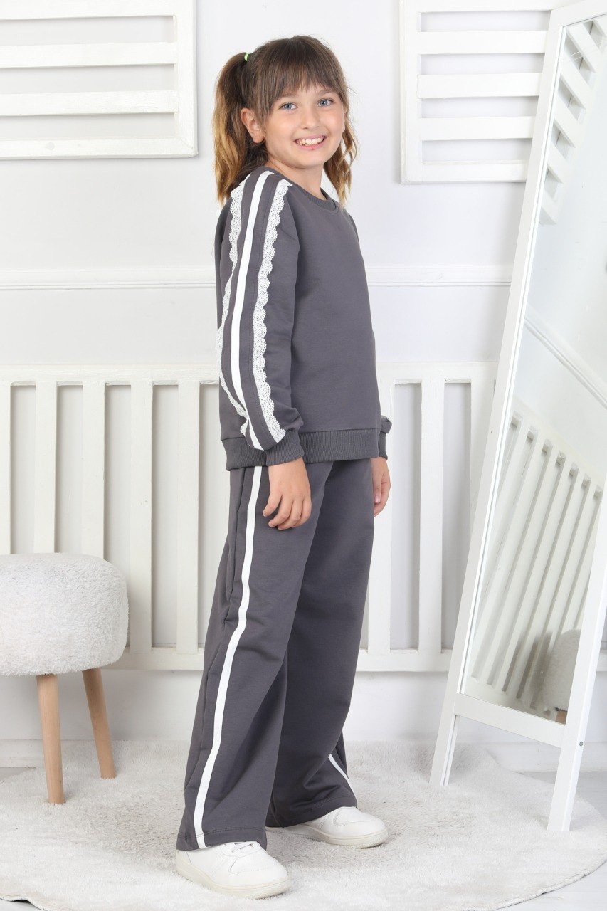 İki İplik Güpürlü Çizgili Kız Çocuk Takım