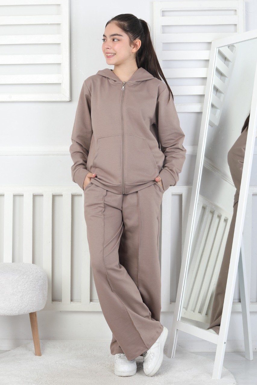 İki İplik Kapüşonlu Fermuarlı Kız Çocuk Takım