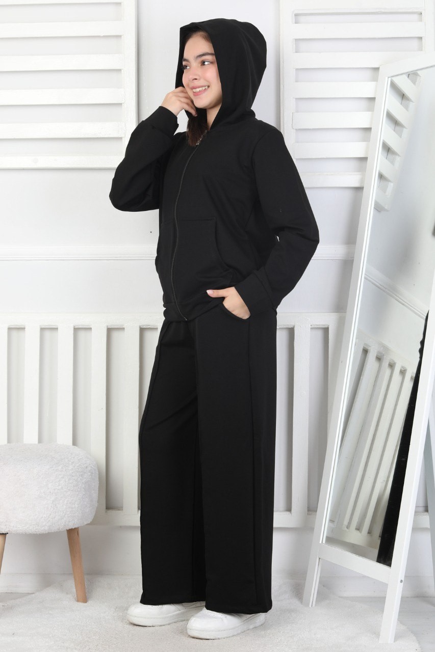 İki İplik Kapüşonlu Fermuarlı Kız Çocuk Takım