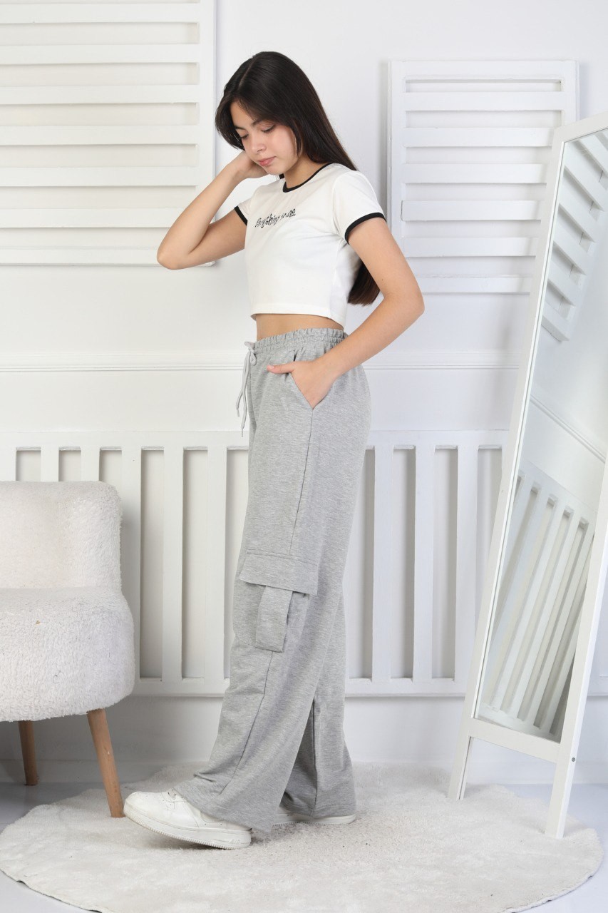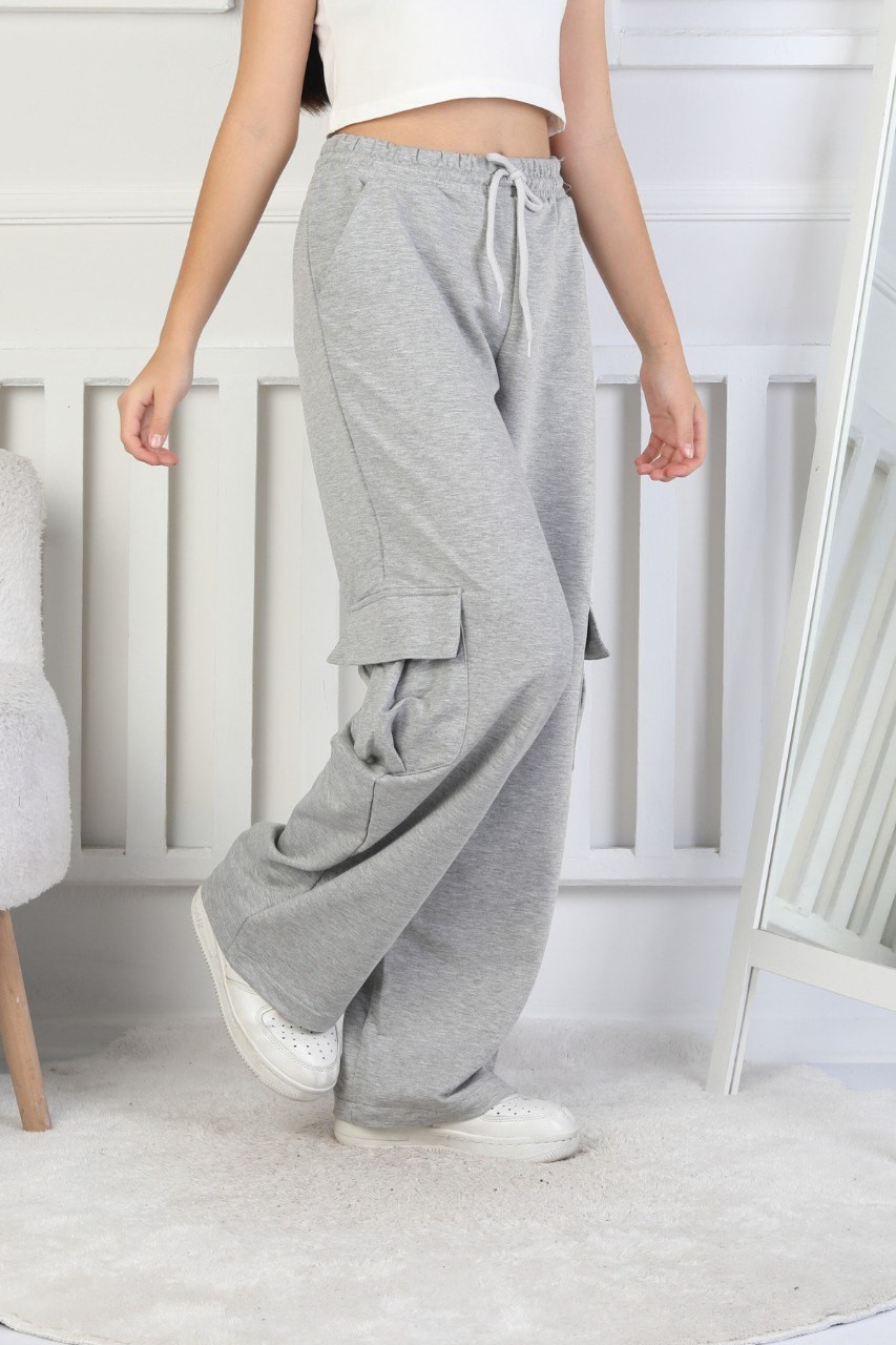 İki İplik Kargo Çepli Kız Çocuk Gri Eşofman Altı