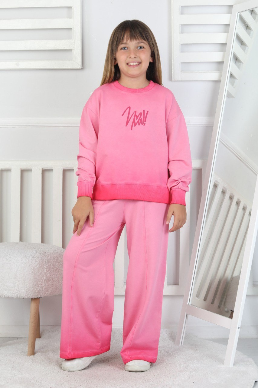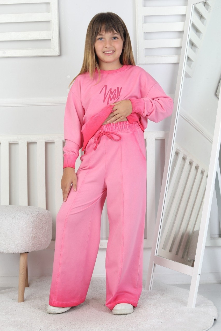 İki İplik Yıkamalı Baskılı Pembe Kız Çocuk Takım