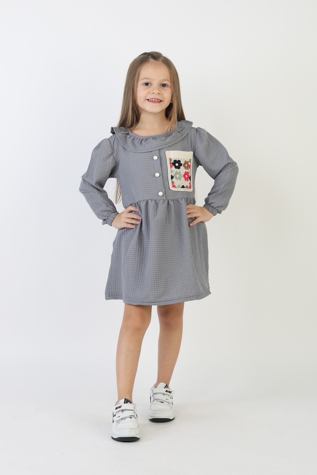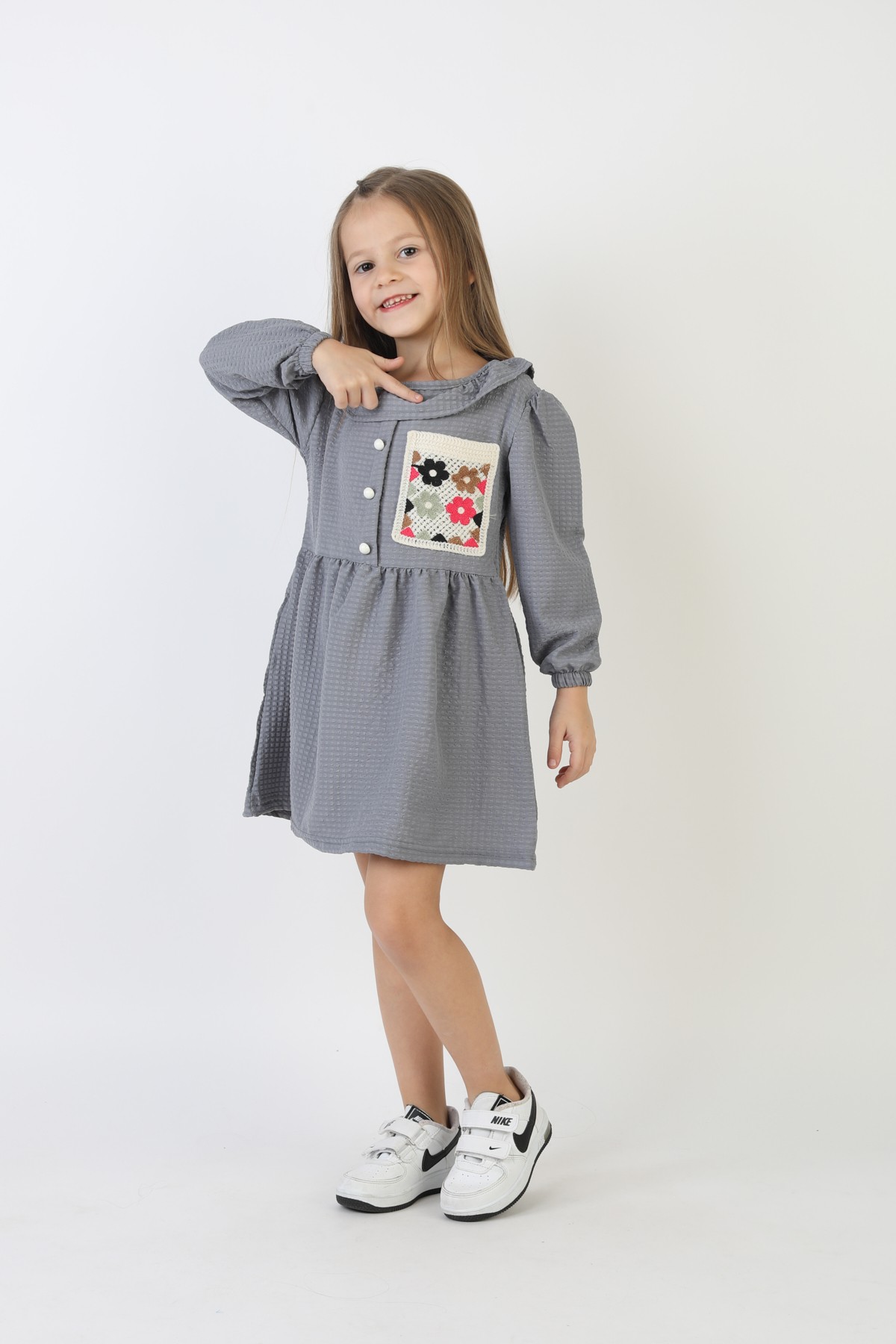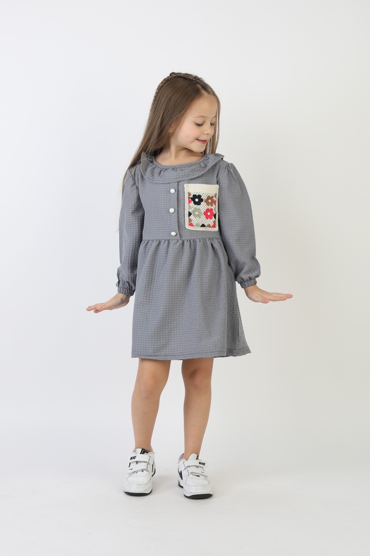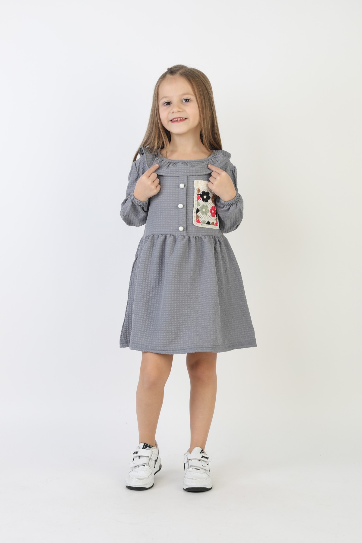 İşlemeli Gofre Kumaş Kız Çocuk Günlük Şık Rahat Ve Trend Elbise
