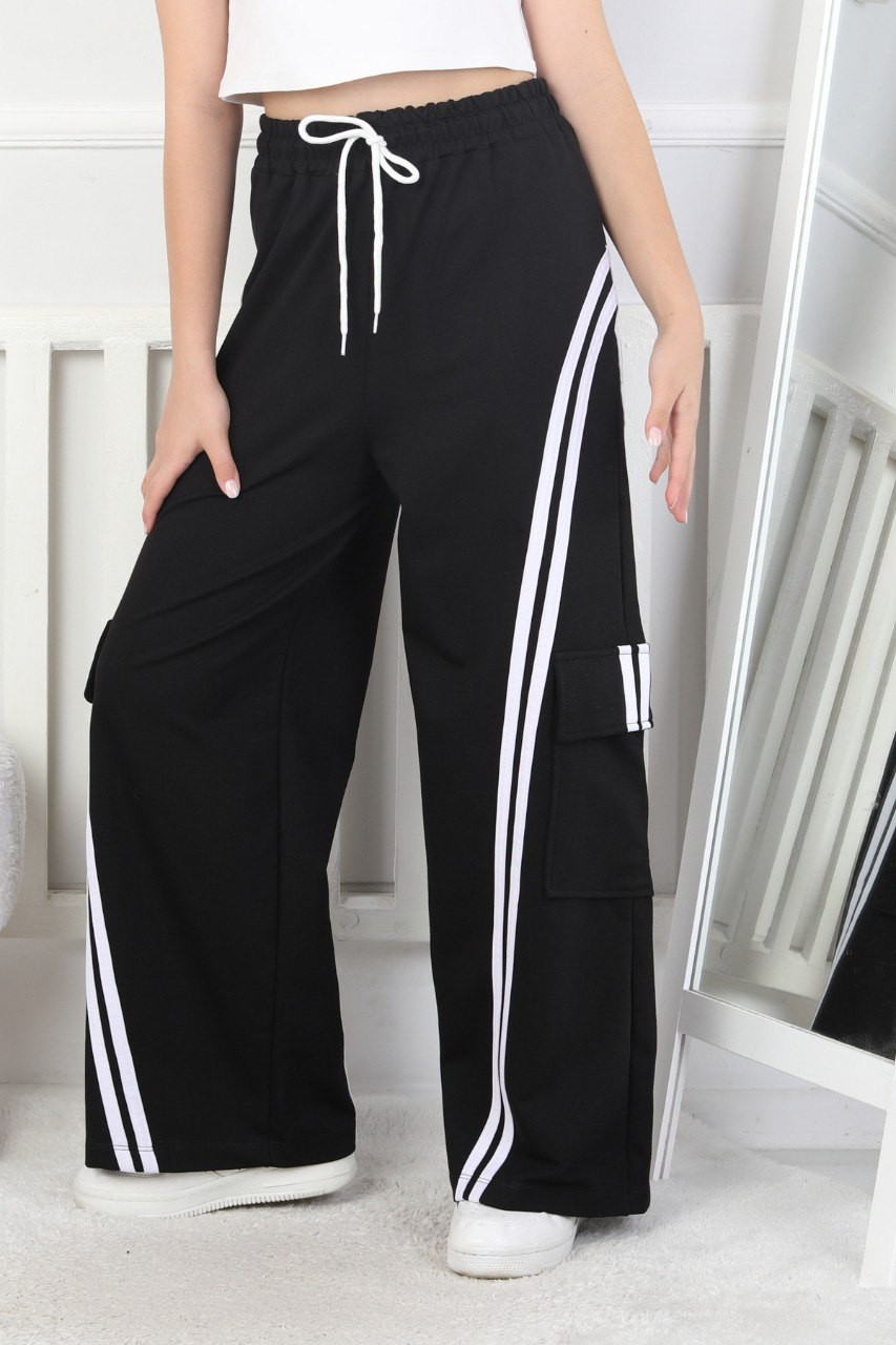 Kargo Cepli Bol Paça Kız Çocuk Siyah Eşofman Altı