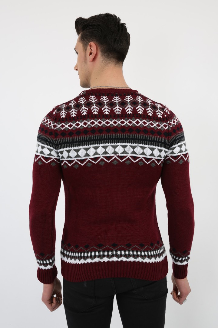 Karışık Desenli Bordo Kalın Kışlık Günlük Triko Kazak