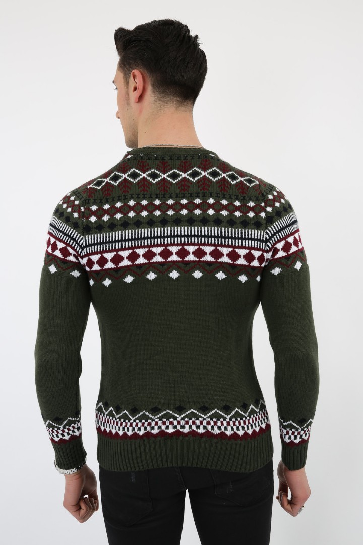 Karışık Desenli Yeşil Kalın Kışlık Günlük Triko Kazak