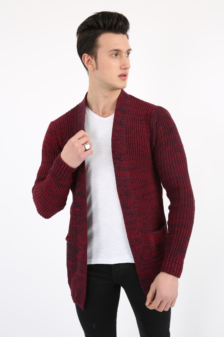 Önü Açık Cepli Kalın Erkek Günlük Triko Kazak Hırka