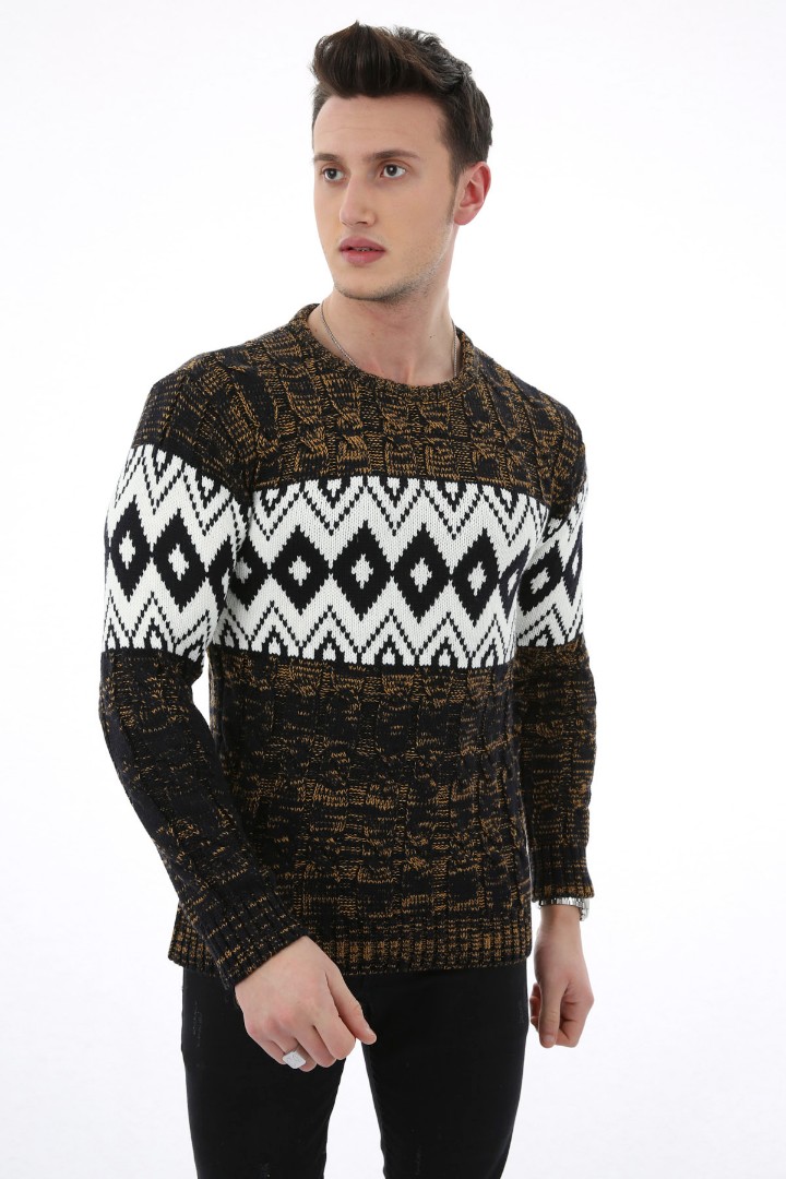 Örgü Desenli Kahve Kalın Kışlık Günlük Triko Kazak