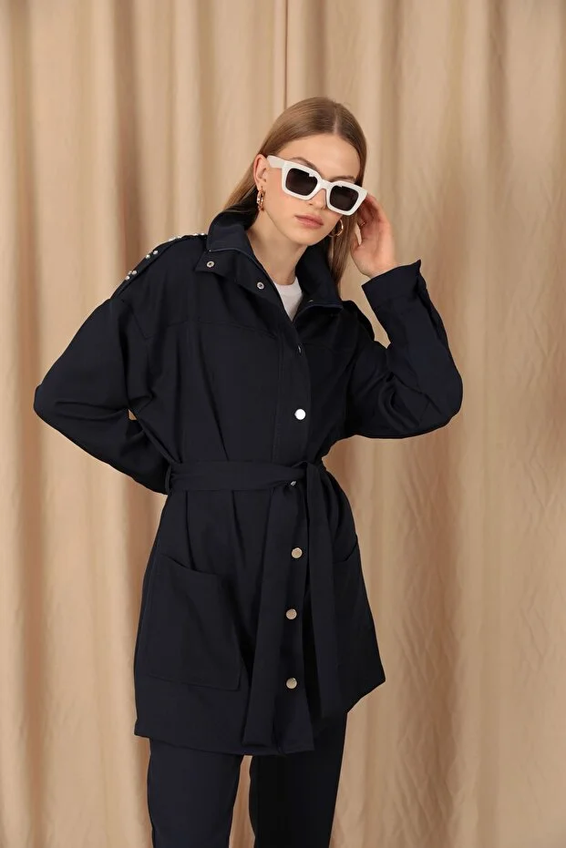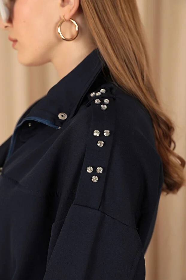 Ön kısmındaki fermuarlı yaka tasarımı sportif bir şıklık sunarken, bel kuşak detayı vücut hatlarını zarifçe belirginleştirir ve kusursuz bir siluet oluşturur. İster ofis stilinizde ister günlük kombinlerinizde rahatlıkla tercih edebileceğiniz bu ceket, dört mevsim stilinizin imza parçası olmaya aday.