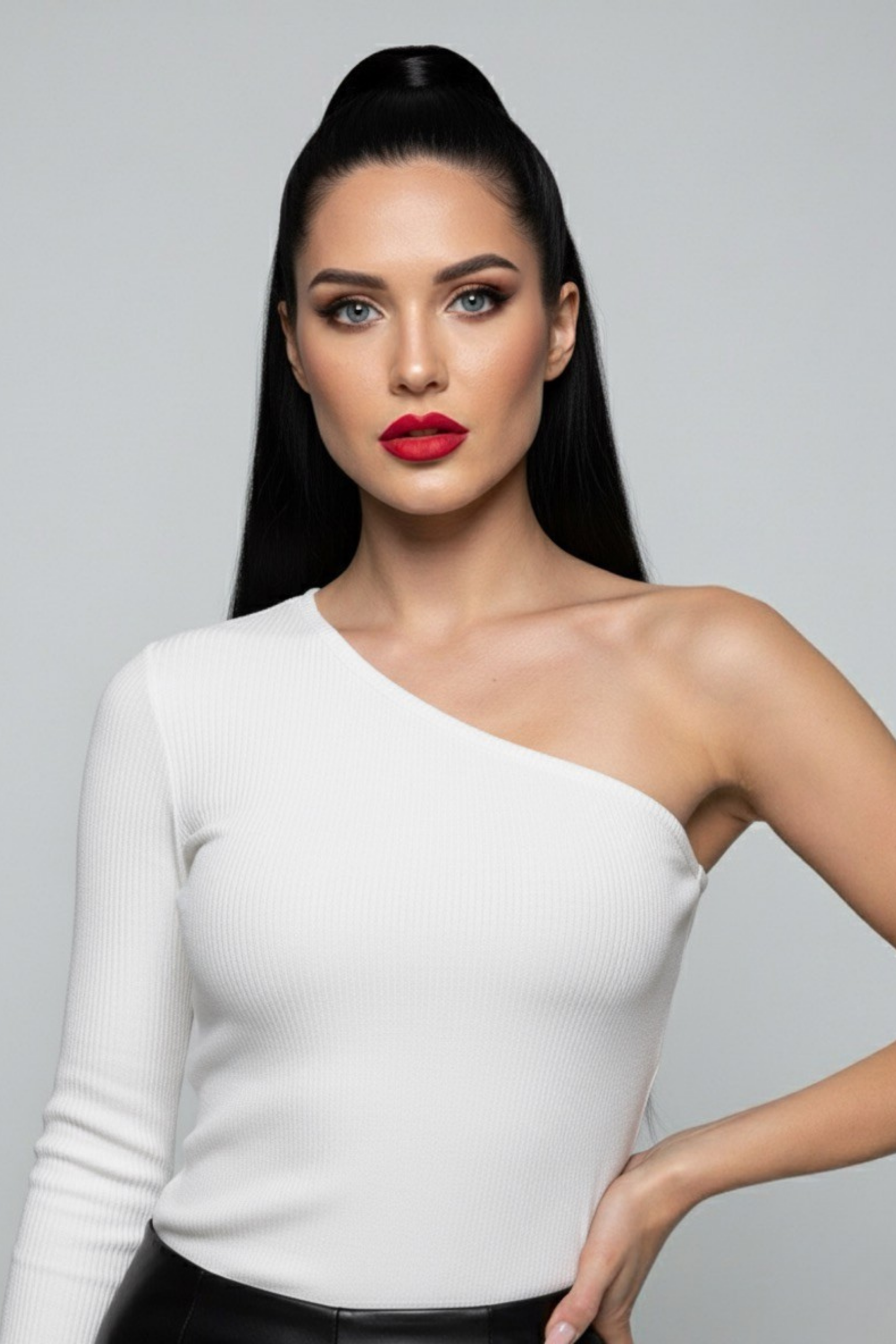 Zarif ve modern tasarımıyla öne çıkan bu beyaz kaşkorse bluz, tek omuz kesimiyle şıklığınıza sofistike bir dokunuş katıyor. Esnek yapısı sayesinde vücuda mükemmel uyum sağlar, gün boyu konfor sunar. Hem günlük kombinlerde hem de özel davetlerde kullanıma uygundur.