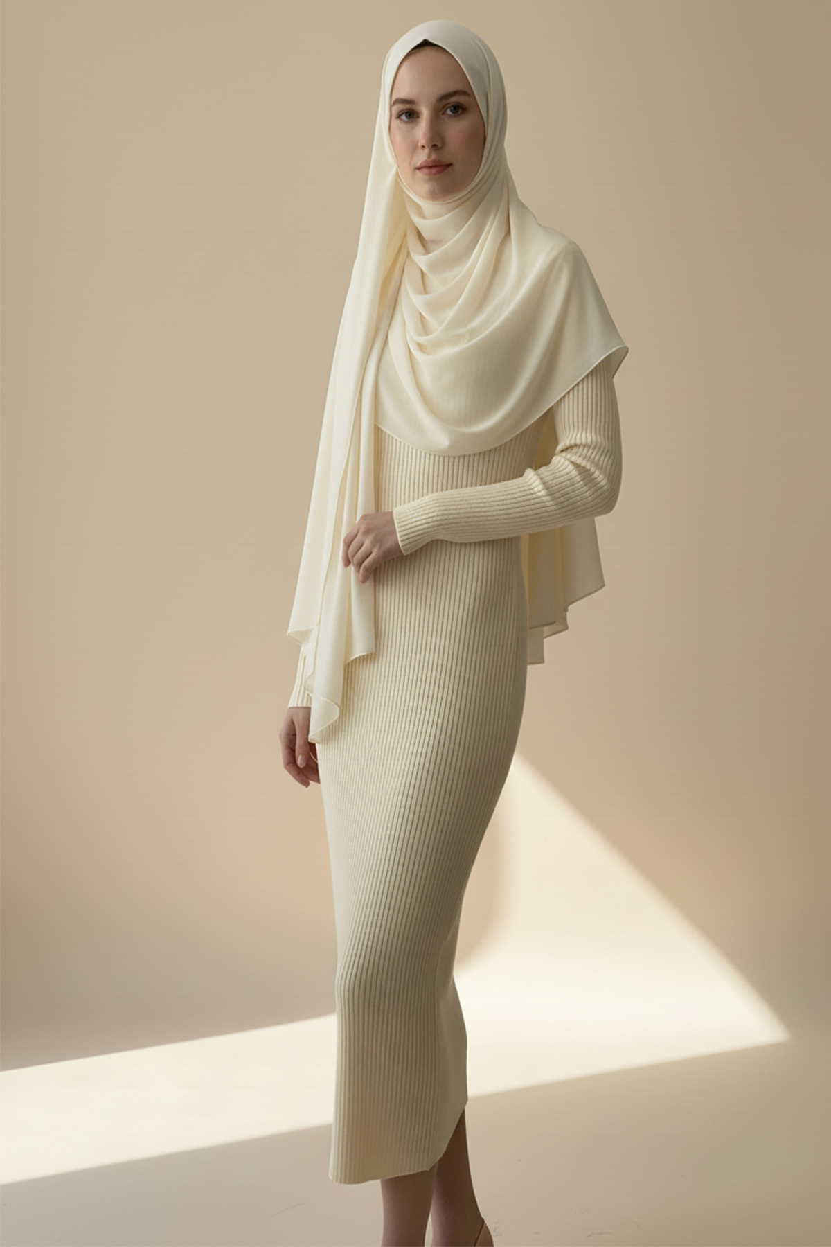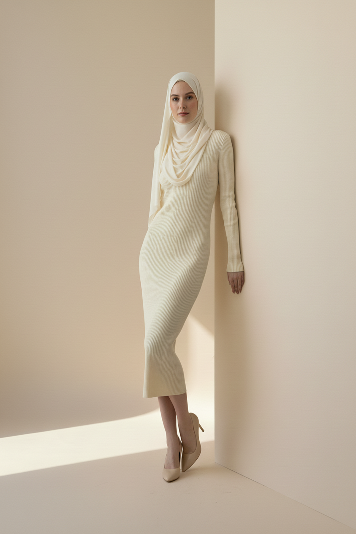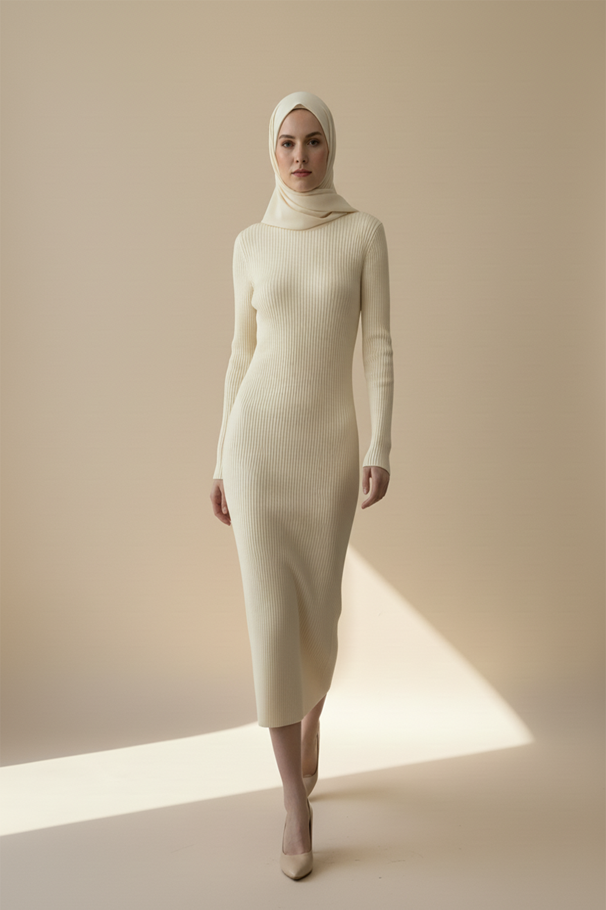 Kadın Bisiklet Yaka Uzun Elbise Tesettür