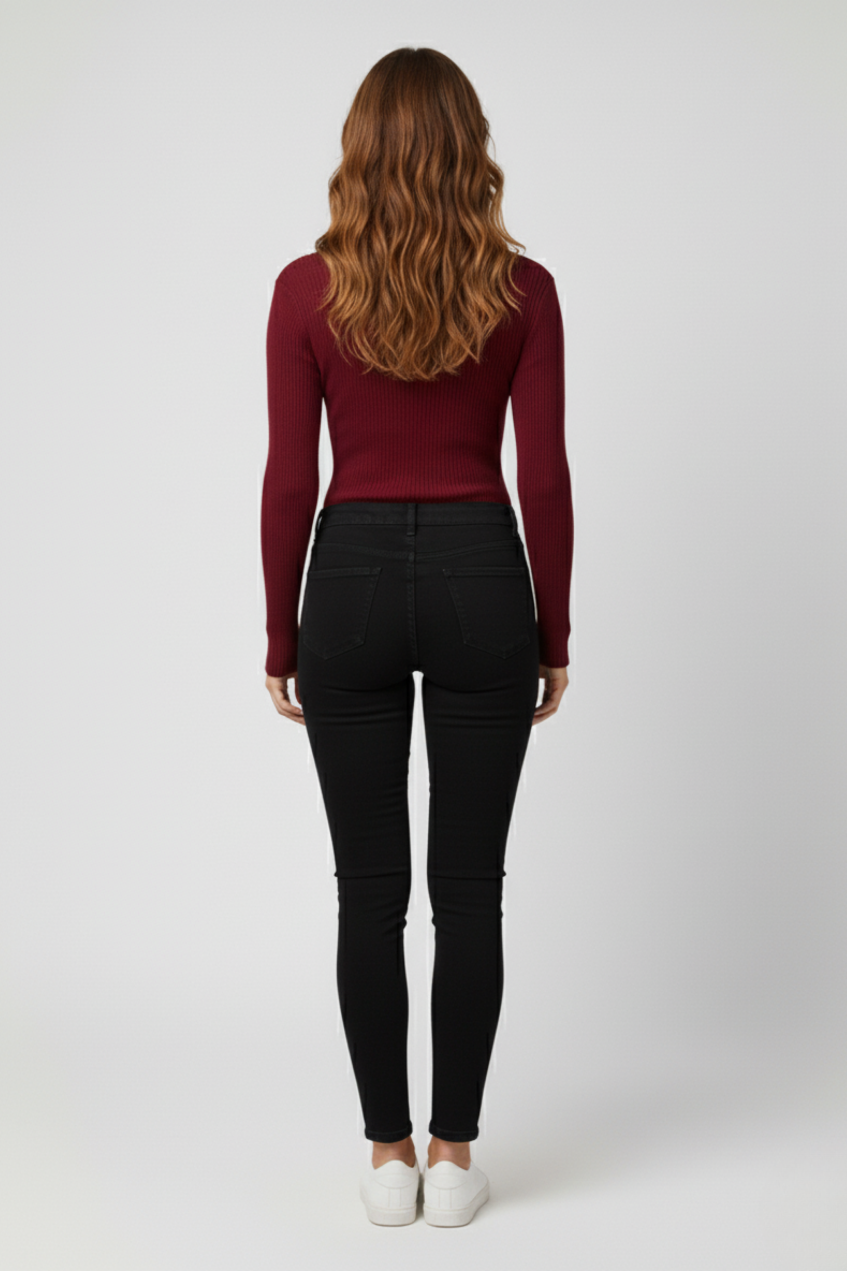 Kadın bordo boğazlı triko kazak, klasik boğazlı tasarımı ve yumuşak dokusuyla şıklığı ve konforu bir arada sunar. Gardırobunuzun temel parçalarından biri olacak.