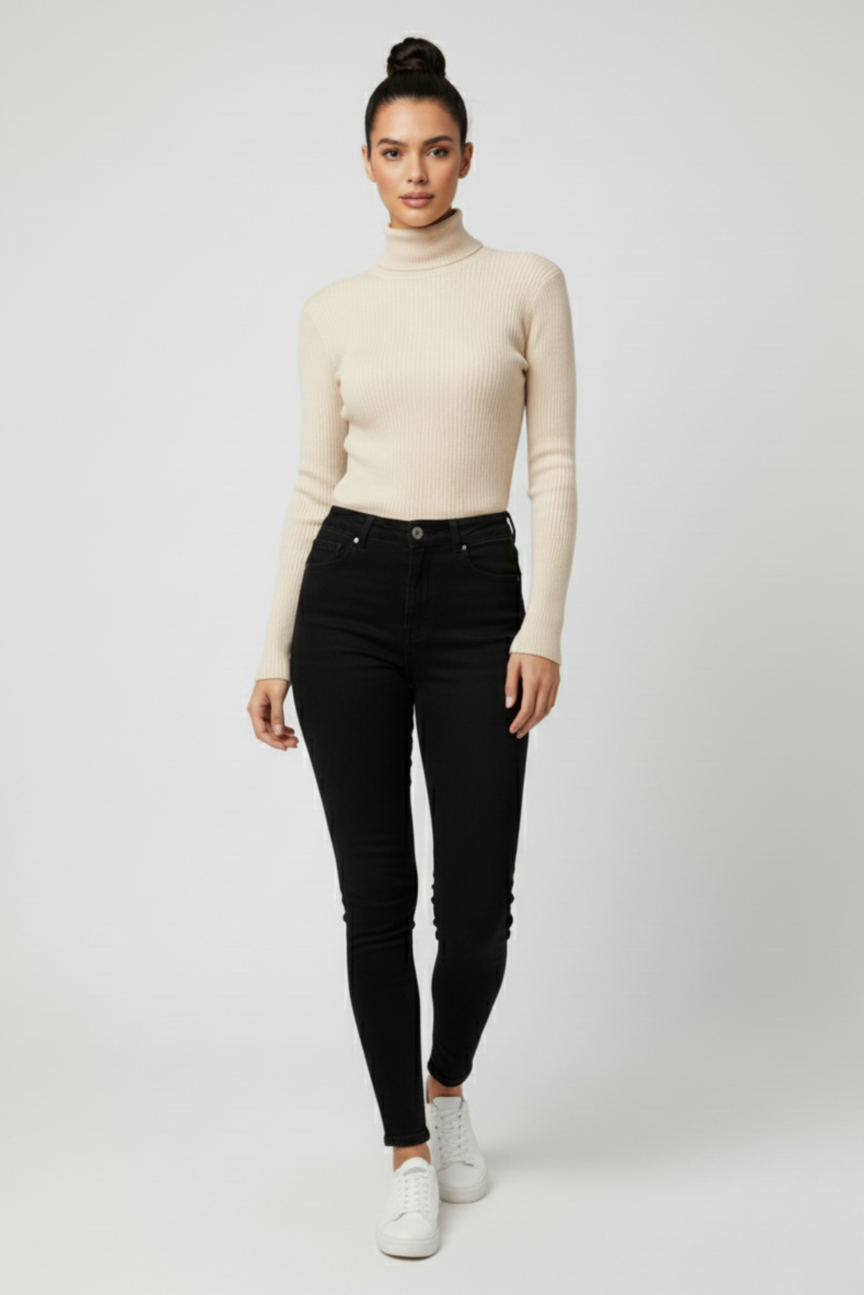Kadın ekru boğazlı triko kazak, nötr rengiyle her kombine uyum sağlar. İnce dokusu ve rahat kesimi ile gardırobunuzun vazgeçilmezi olacak.