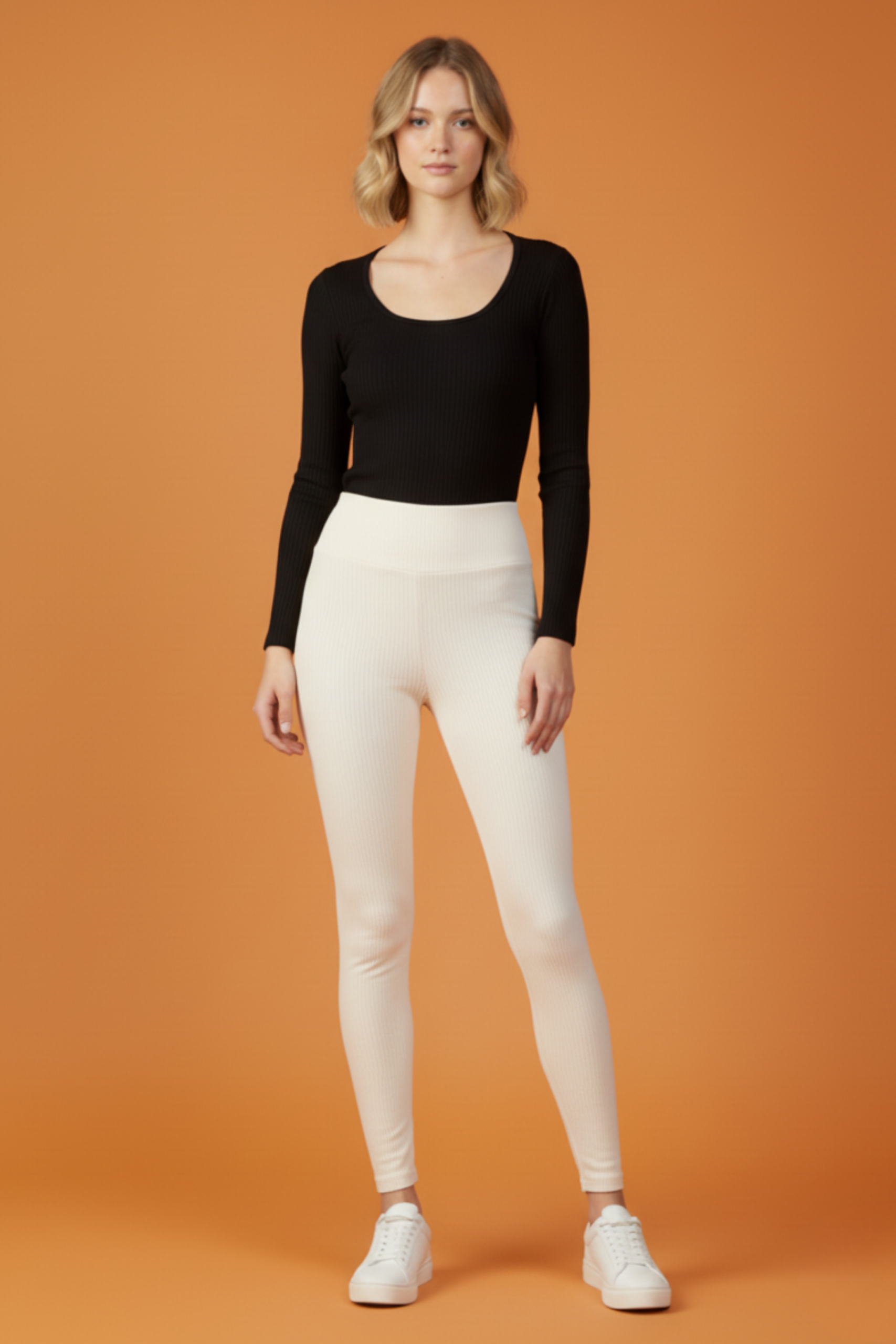 Kadın Fitilli Krem Rengi Tayt – Zarif, Yumuşak ve Kusursuz Konfor