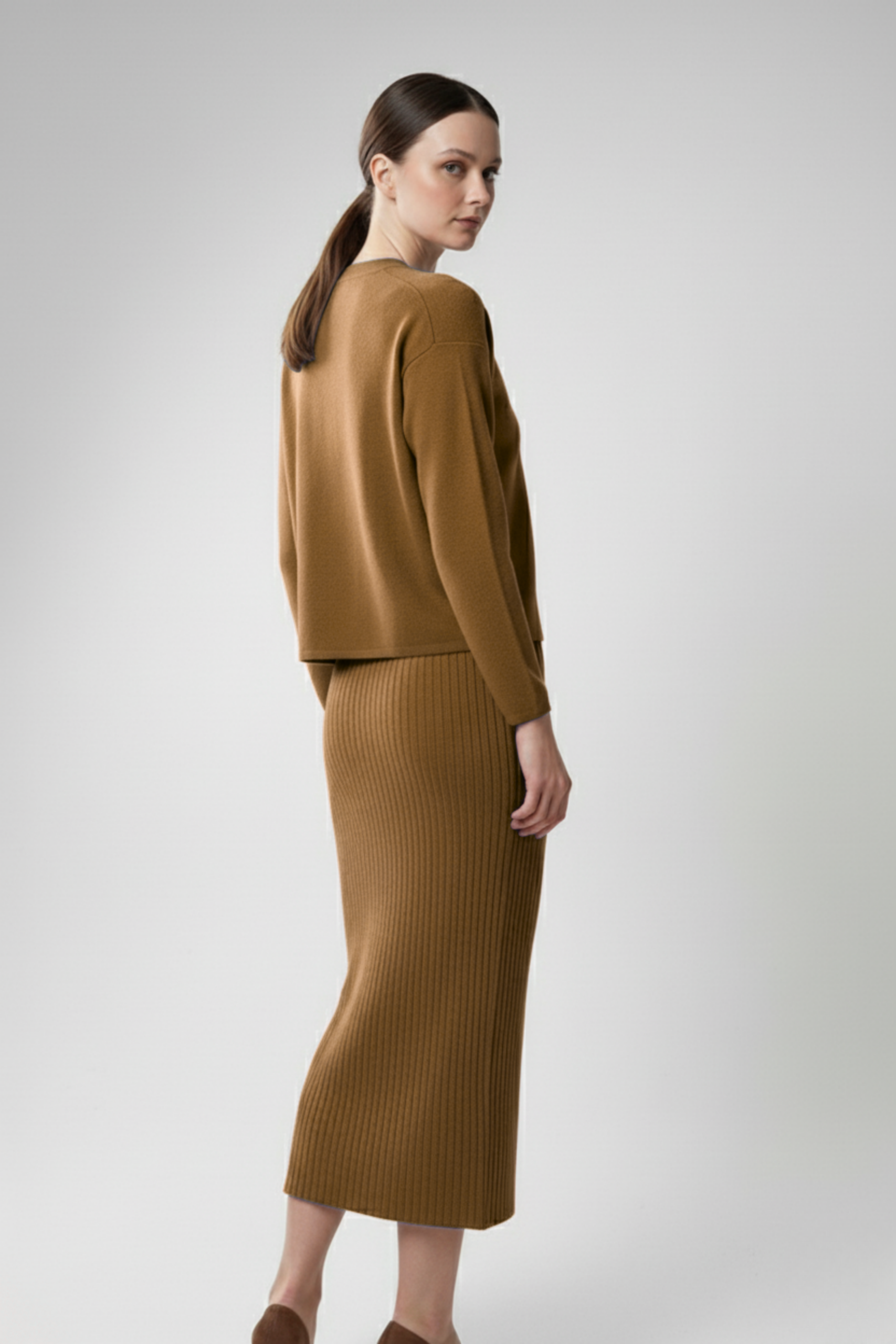 Kadın Hırka Elbise İkili Takım – Kahverengi