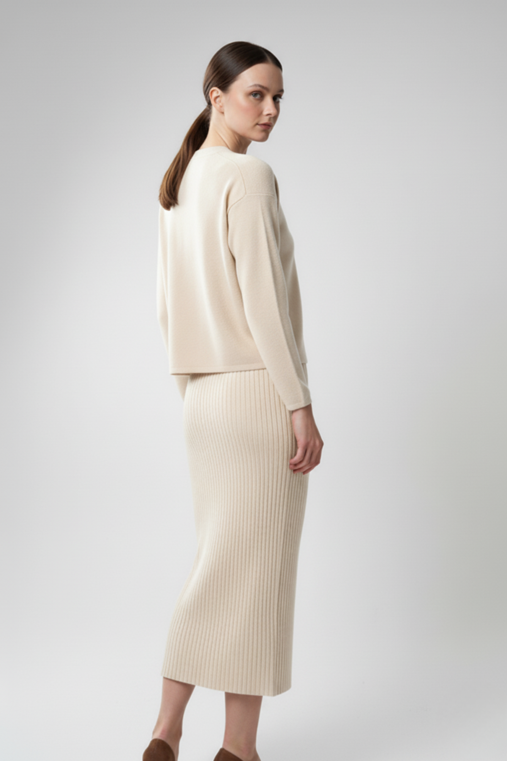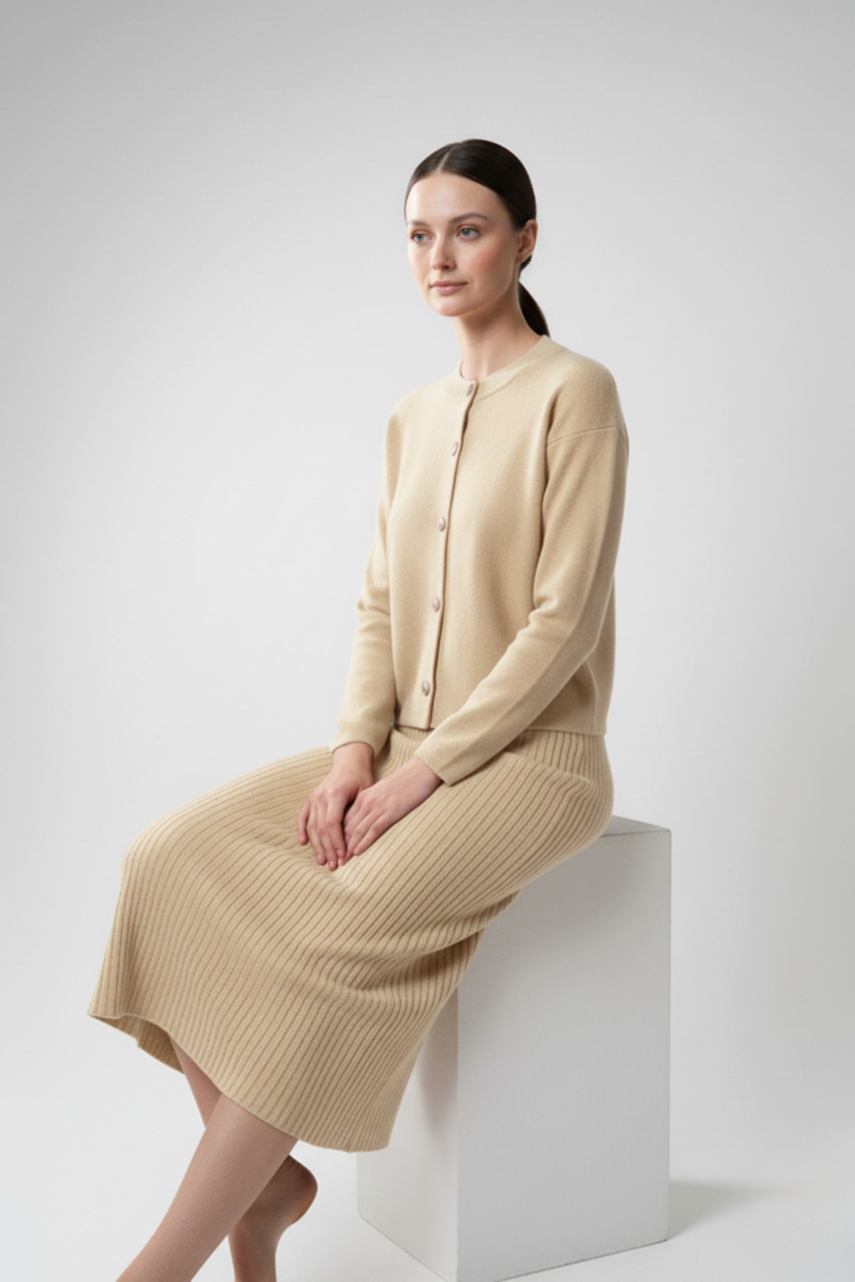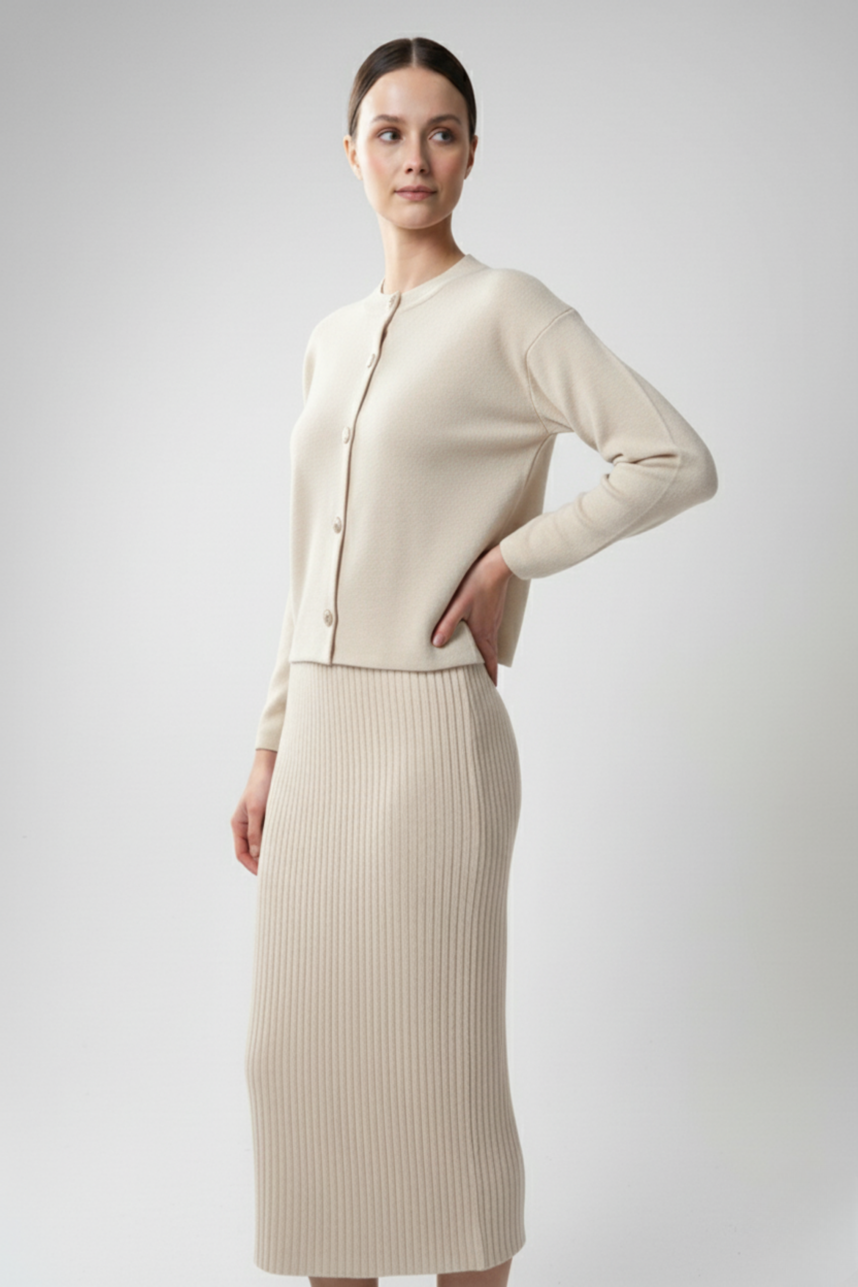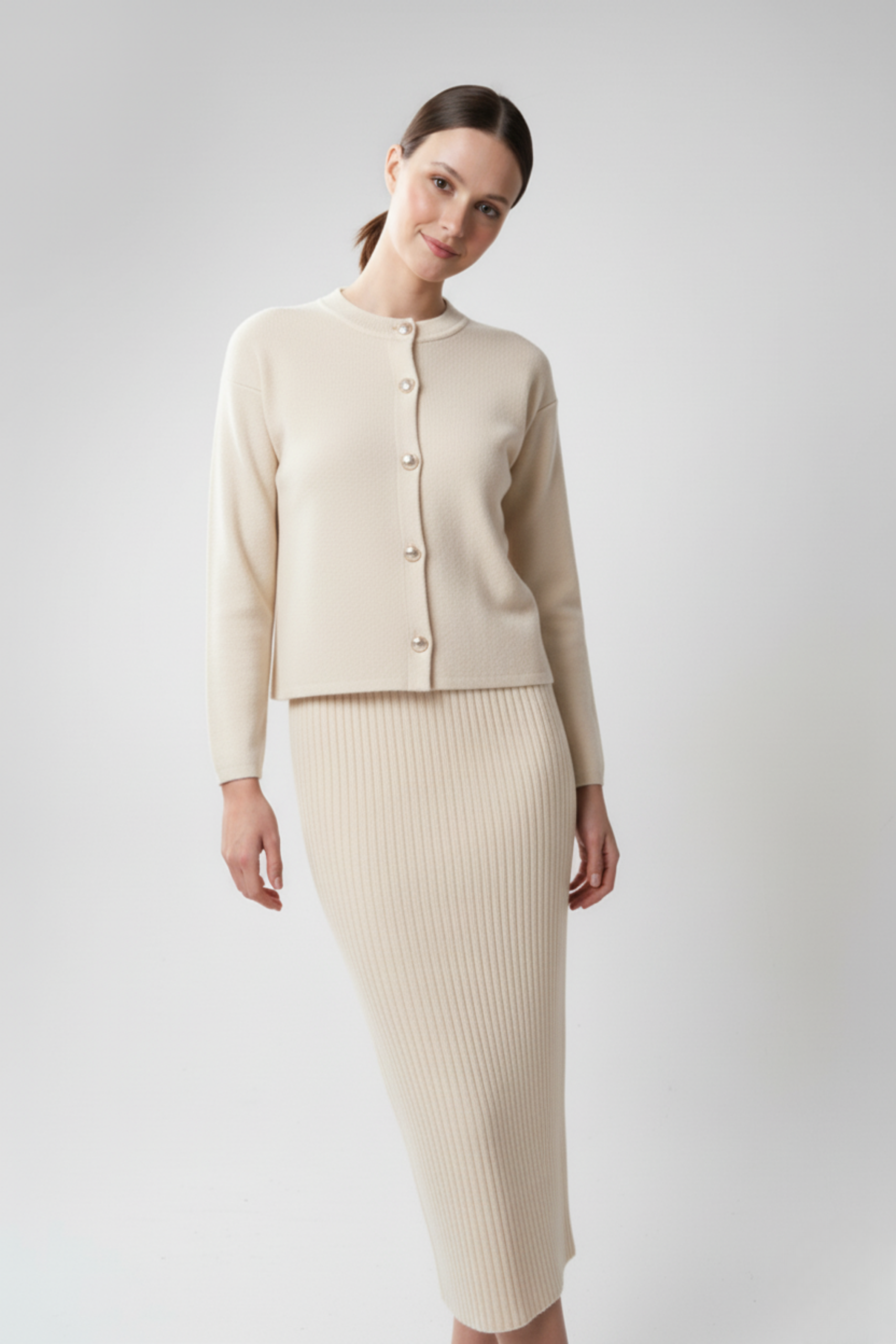 Kadın Hırka Elbise İkili Takım – Krem, sade zarafetiyle her dönemin favorisi olmaya aday! Krem rengin soft ve zarif tonları, doğal bir ışıltı kazandırırken, triko dokusu yumuşacık bir konfor sunar. Uzun hırka ve uyumlu elbise tasarımı, zarif bir bütünlük oluşturarak hem günlük hem de özel anlarda kusursuz bir görünüm sağlar. Minimal çizgileriyle öne çıkan bu takım, sade ama etkileyici şıklığın en güzel hali!
