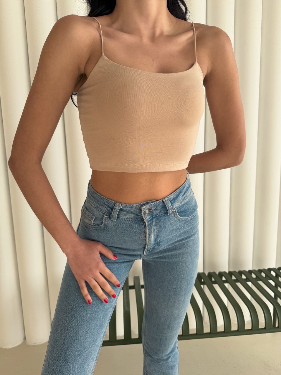 Kadın İp Askılı Kısa Crop – Ten Rengi
